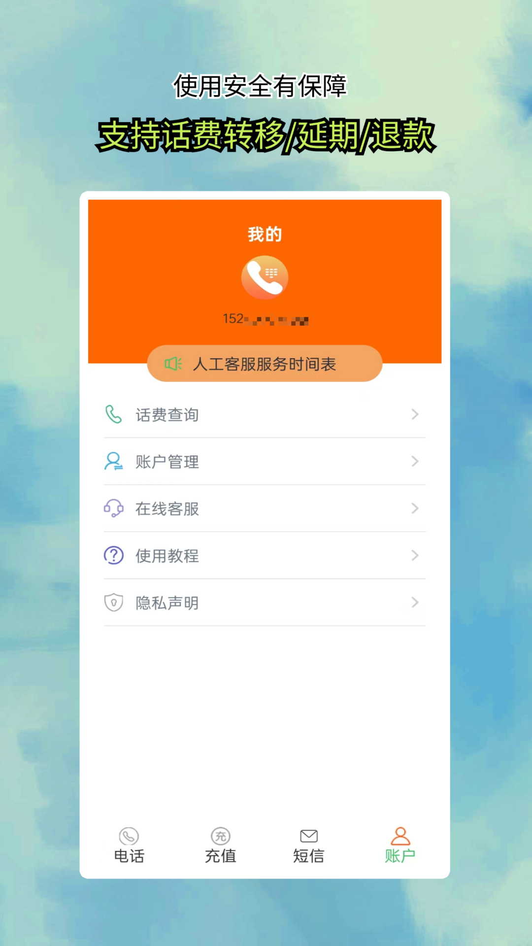 【对方不用下载】无需流量,只要处于有网络的环境下下发通话指令,系统就能迅速让双方实现通话。并且支持话费转移、延期,还能将手机号码的话费换转到小号等功能。