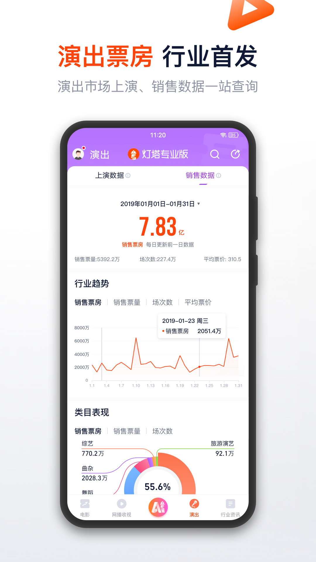 3. 演出票房数据:在演出行业公开票房数据,支持查看不同地区、不同演出类型的票房数据。