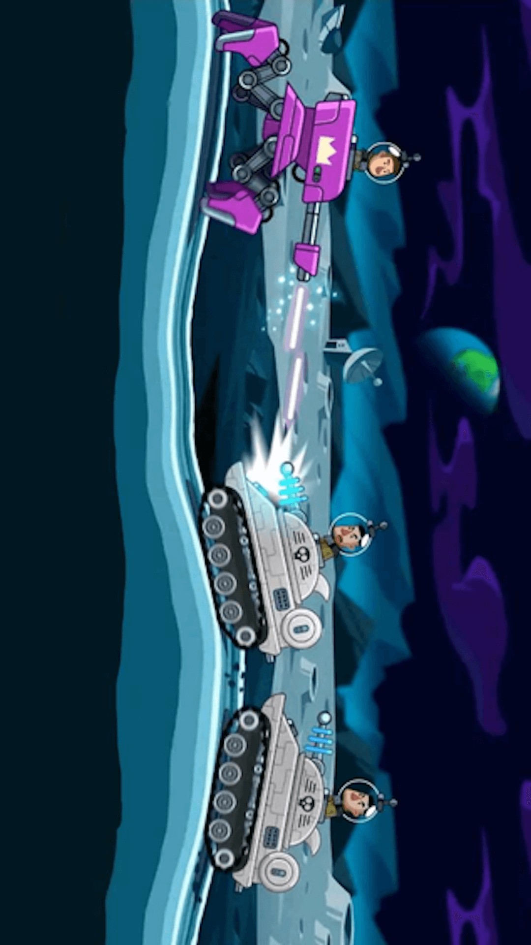 -点击左右按钮控制坦克的前进或后退,点击射击攻击地方坦克