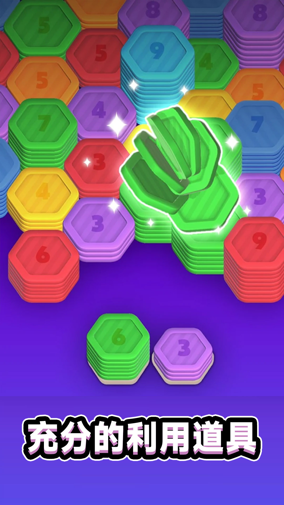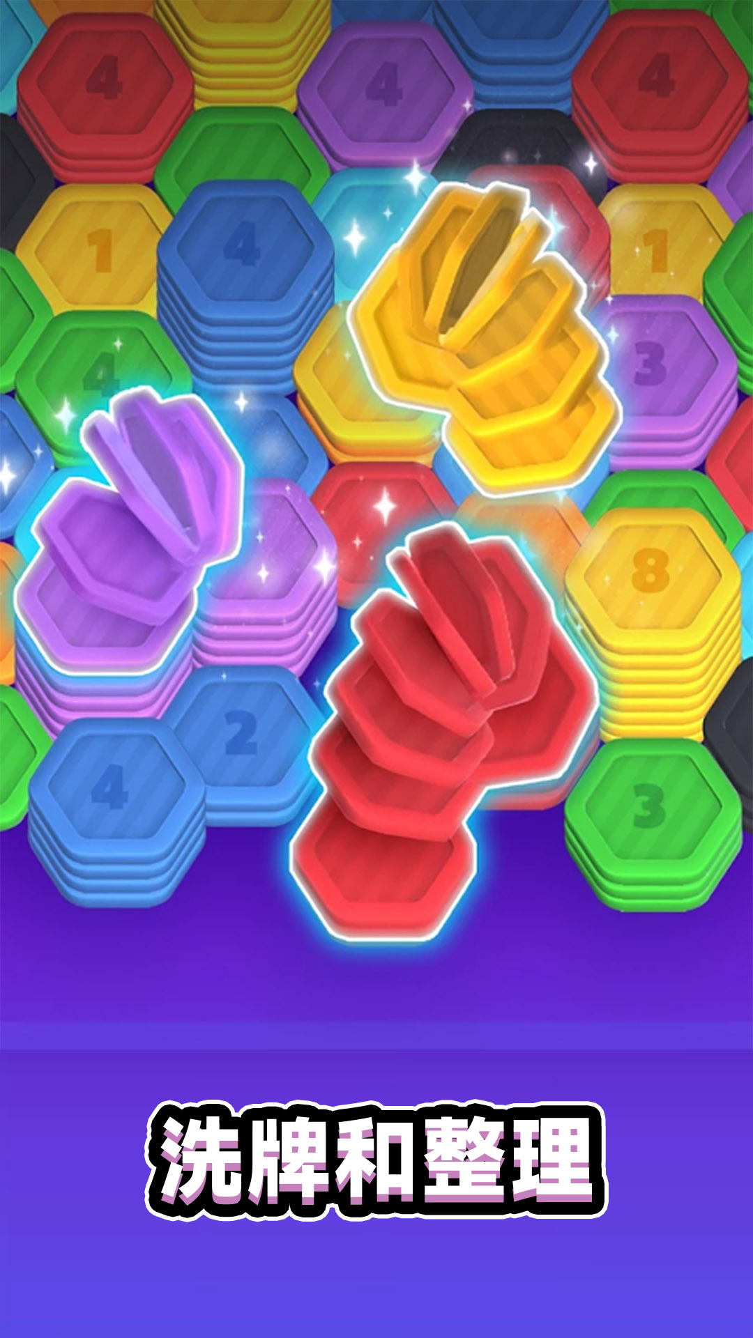 - 洗牌和整理: 掌握整理充满活力的六边形艺术,明智地决定放置每个六边形卡组的位置。 相同颜色的卡牌并排放置将一起排序。