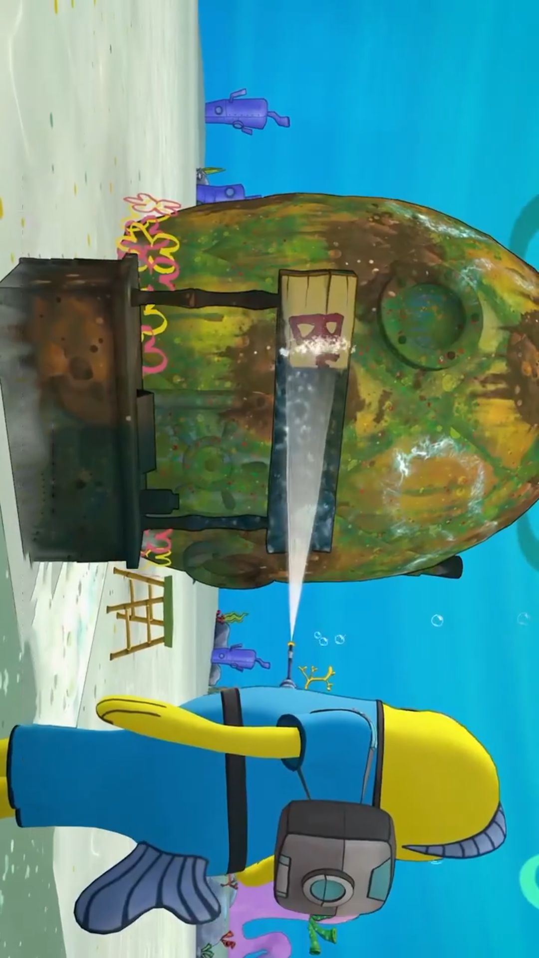 准备好了吗!比基尼海滩地区被邪恶的机器人涂上了污渍,为比奇堡的房子冲刷做清洁,在海底世界进行冒险。广阔的海底世界可以自由探索,在海底世界完成各种不同的任务。探索冒险之旅开始啦!