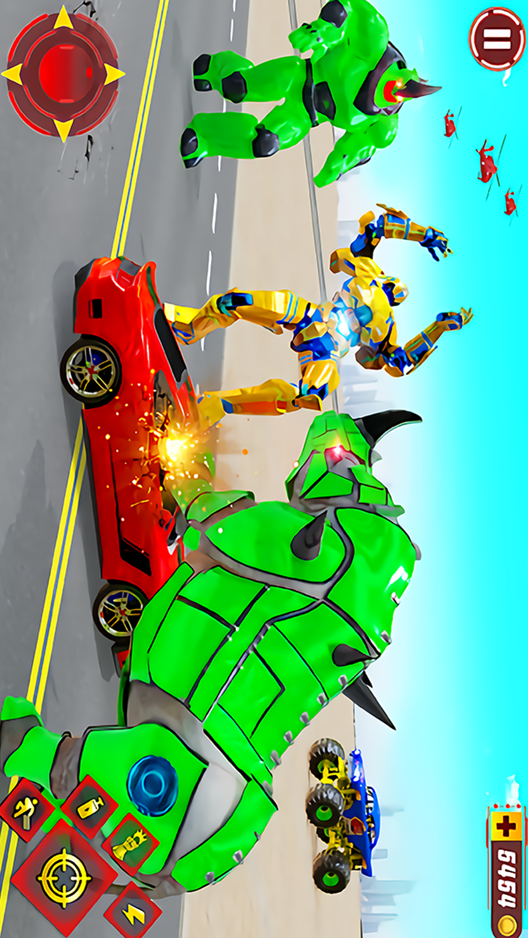 1、玩家滑动屏幕控制角色移动,瞄准和射击敌人。