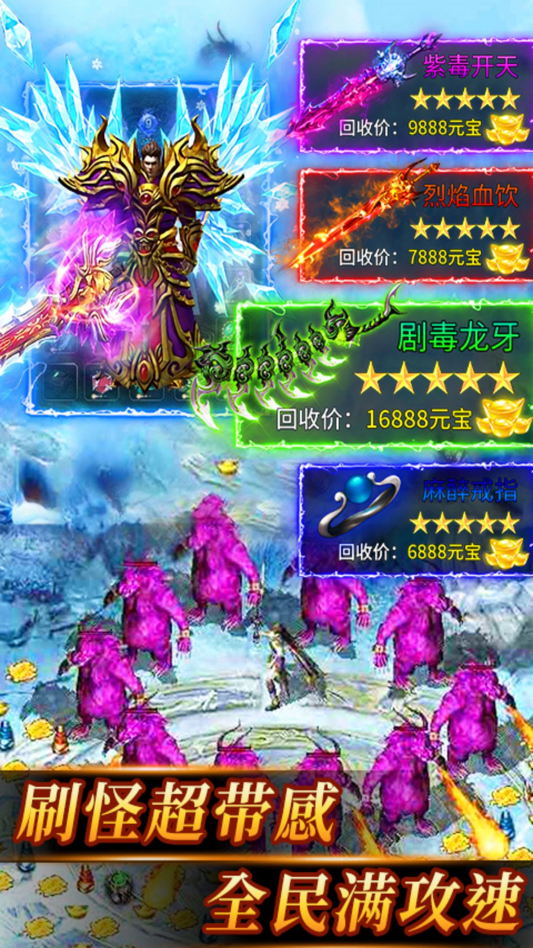 升级官方内挂上线,拒绝外挂碾压,神装离线掉落,稀有装备高爆,上架拍卖行赢充值元宝!
