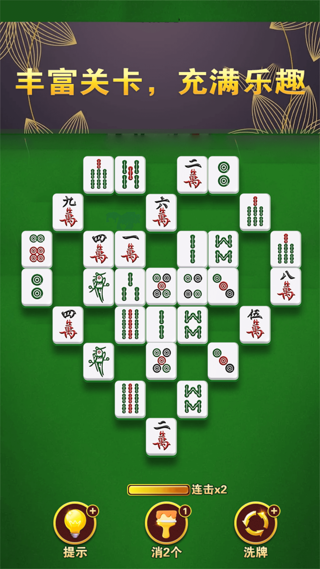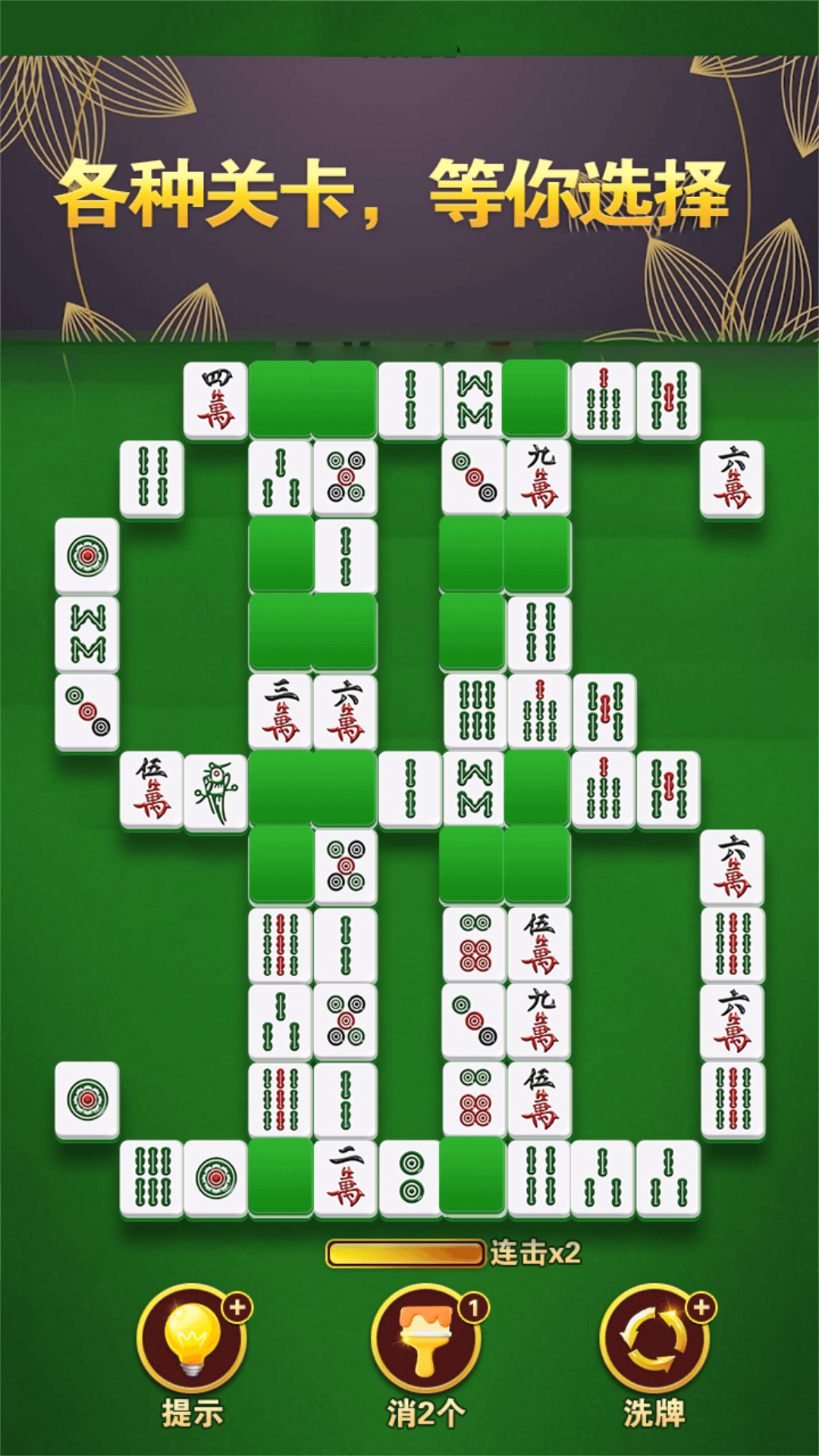这款游戏包含众多关卡与多种挑战模式。你能够在游戏进程中不断磨砺自身技巧,逐步朝着麻将大师的目标前行。