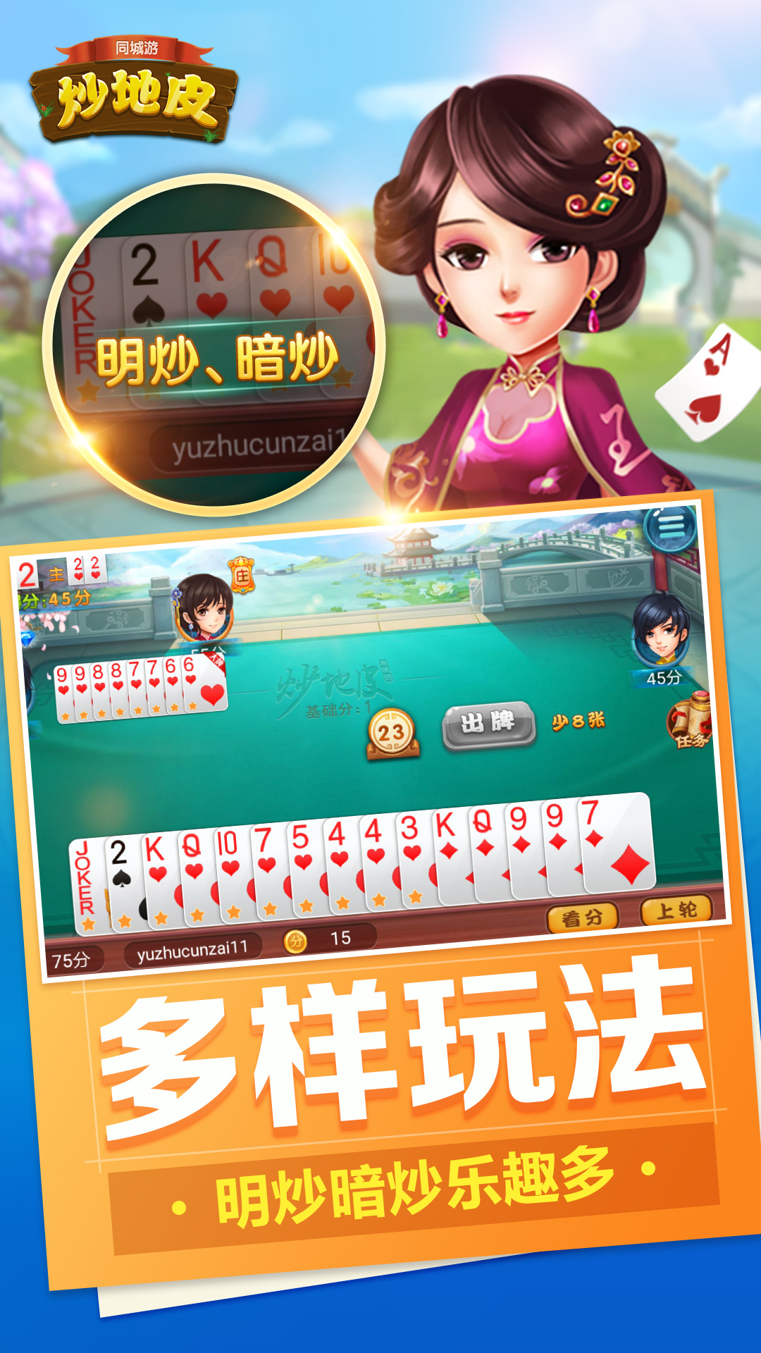 无限炒底,循环扣底,好玩的炒地皮升级!高手在线,牌技对决!