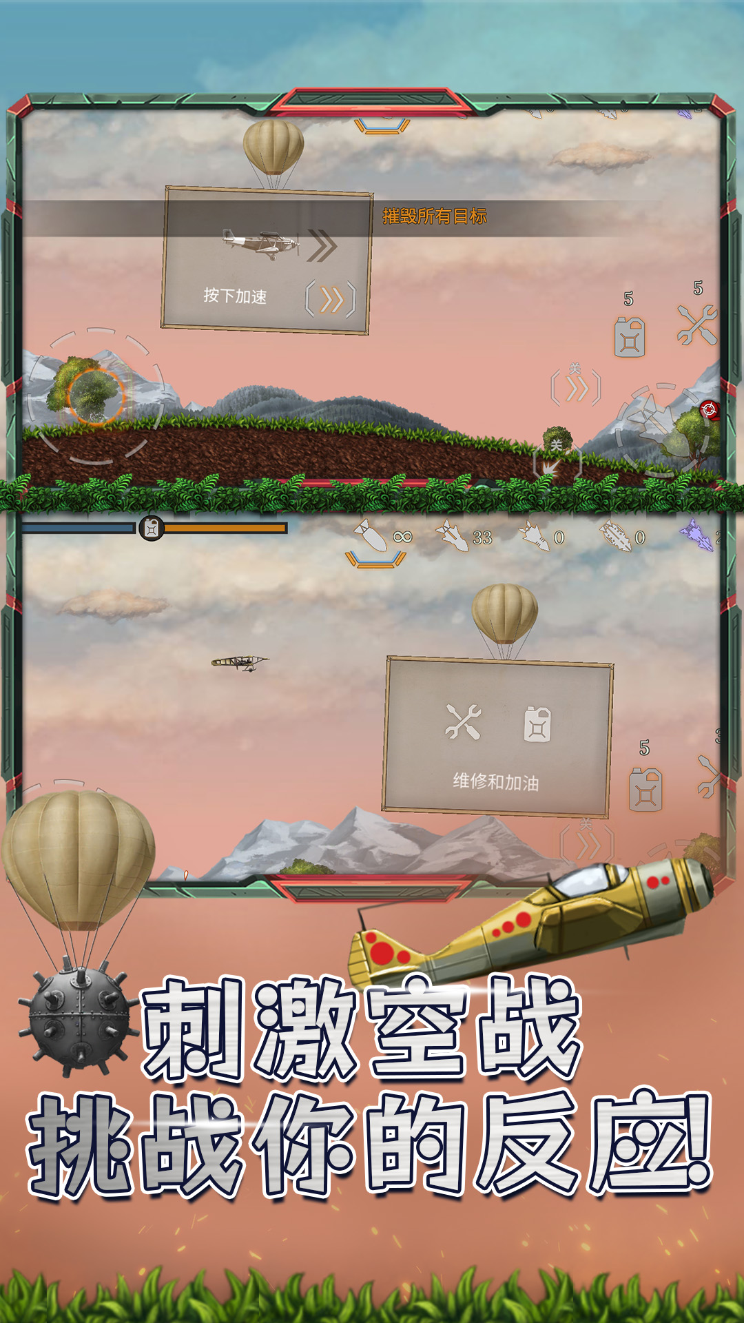 将您的飞机从木制飞机升级并发展为未来的战斗机。