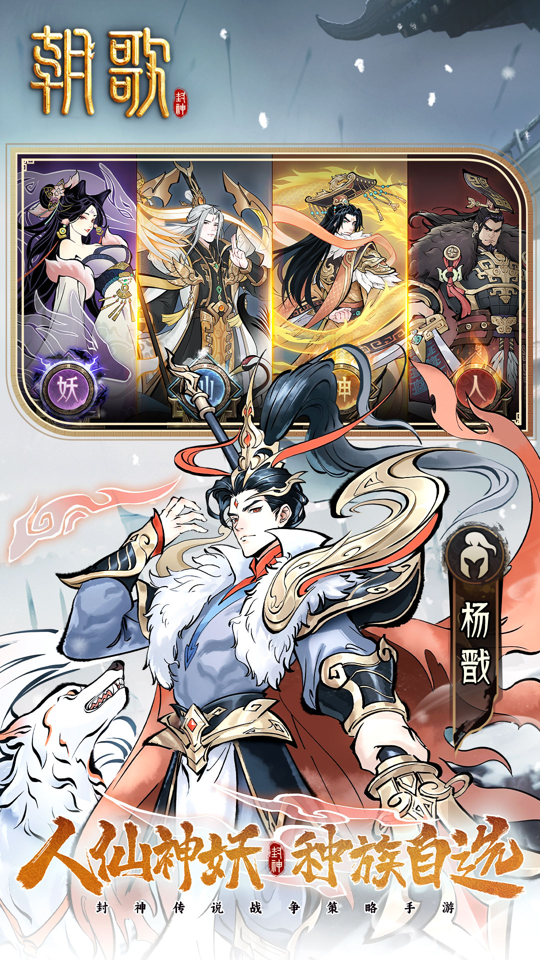 《朝歌》是以封神榜为背景的神仙打架SLG手游,以封神知名武将、山海异兽战宠、仙法法阵对抗、行军打地攻城等多元策略对抗元素,构建了一个充满奇幻宏大的朝歌世界。在每个赛季中选择人族、神族、仙族、妖族4大种族,不同种族均有不同天赋,选择出生州后,统领们可以在偌大的朝歌地图板块中,施展策略和战术,利用地形、局势、行军、技能、武将兵种搭配等,配合盟友打出多种精彩战役。
