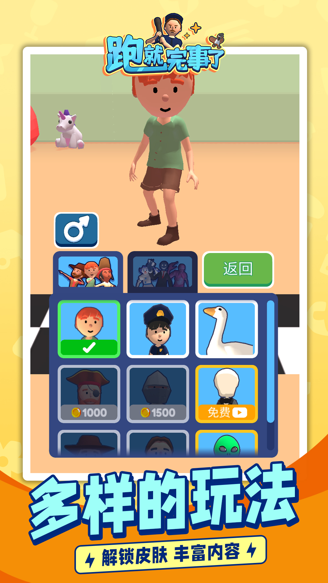 《跑就完事了》是一款十分有趣休闲的障碍躲猫猫游戏。在游戏中玩家需要根据关卡的场景选择适当相应、能够融入环境的物品,并摆放着正确合适的位置,躲开关卡boss的追击并存活下来,获取丰厚的奖励。快来加入躲猫猫游戏吧!