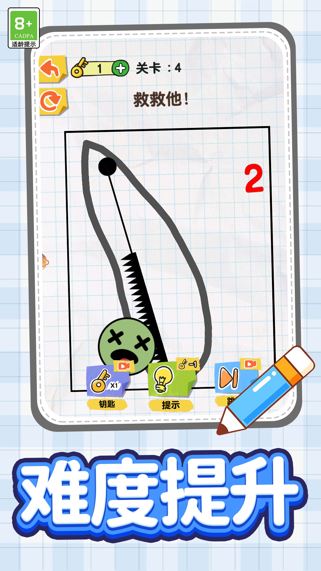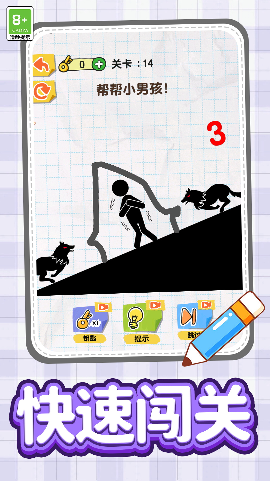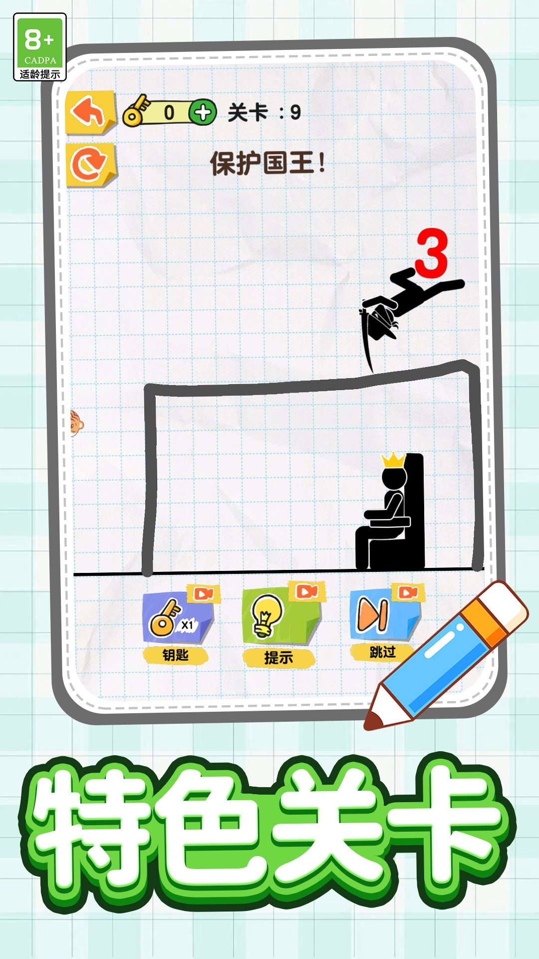 游戏特点: -单机模式,随时随地都能玩一局 -简笔画手绘风格,Q萌有趣又魔性 -关卡设定乐趣十足,难度逐渐增加 -脑洞大开的通关方式,打破思维固式 -简单操作,手指画线即可大小朋友都能玩