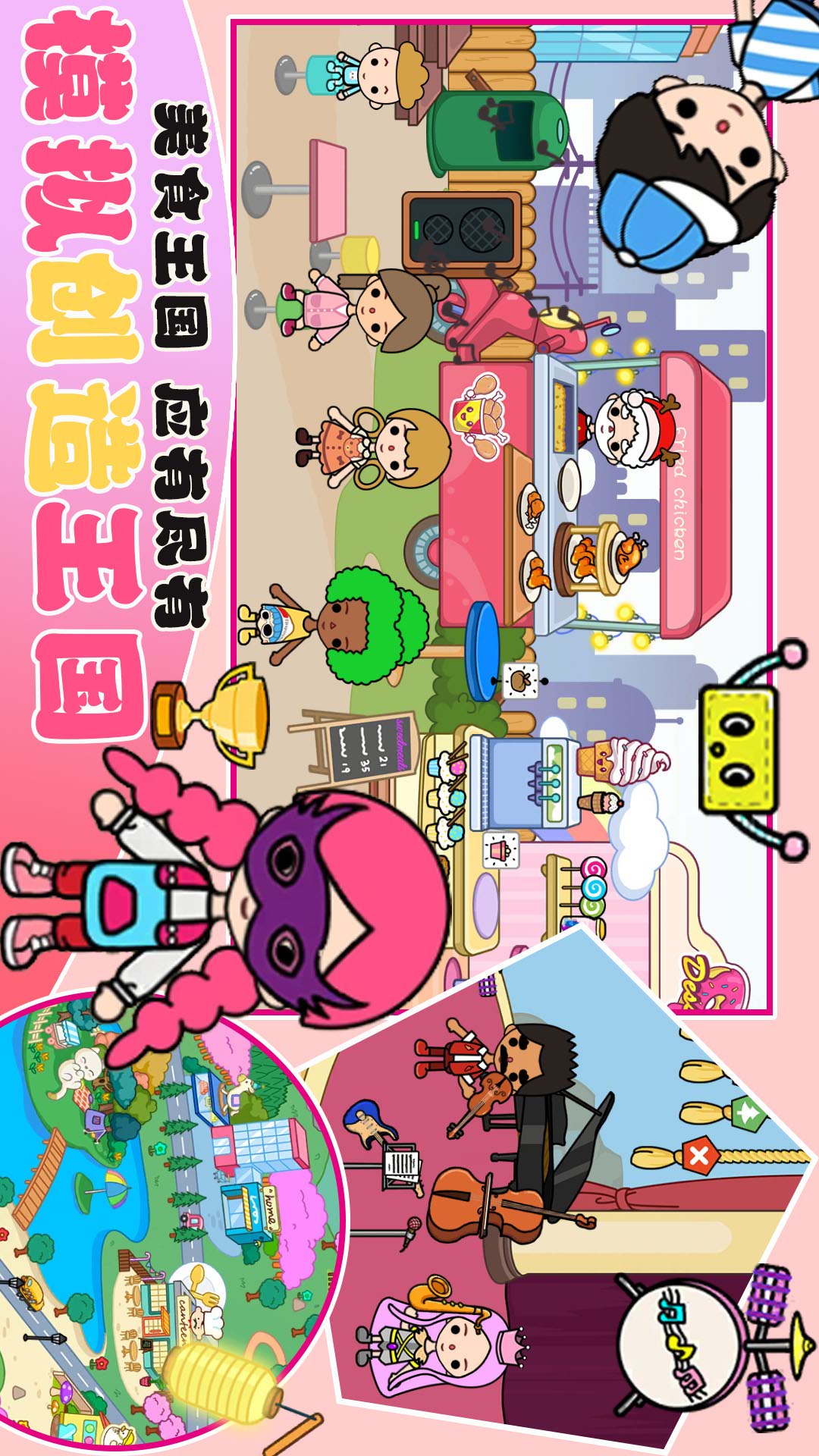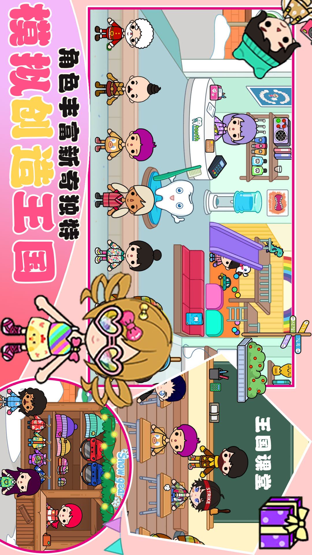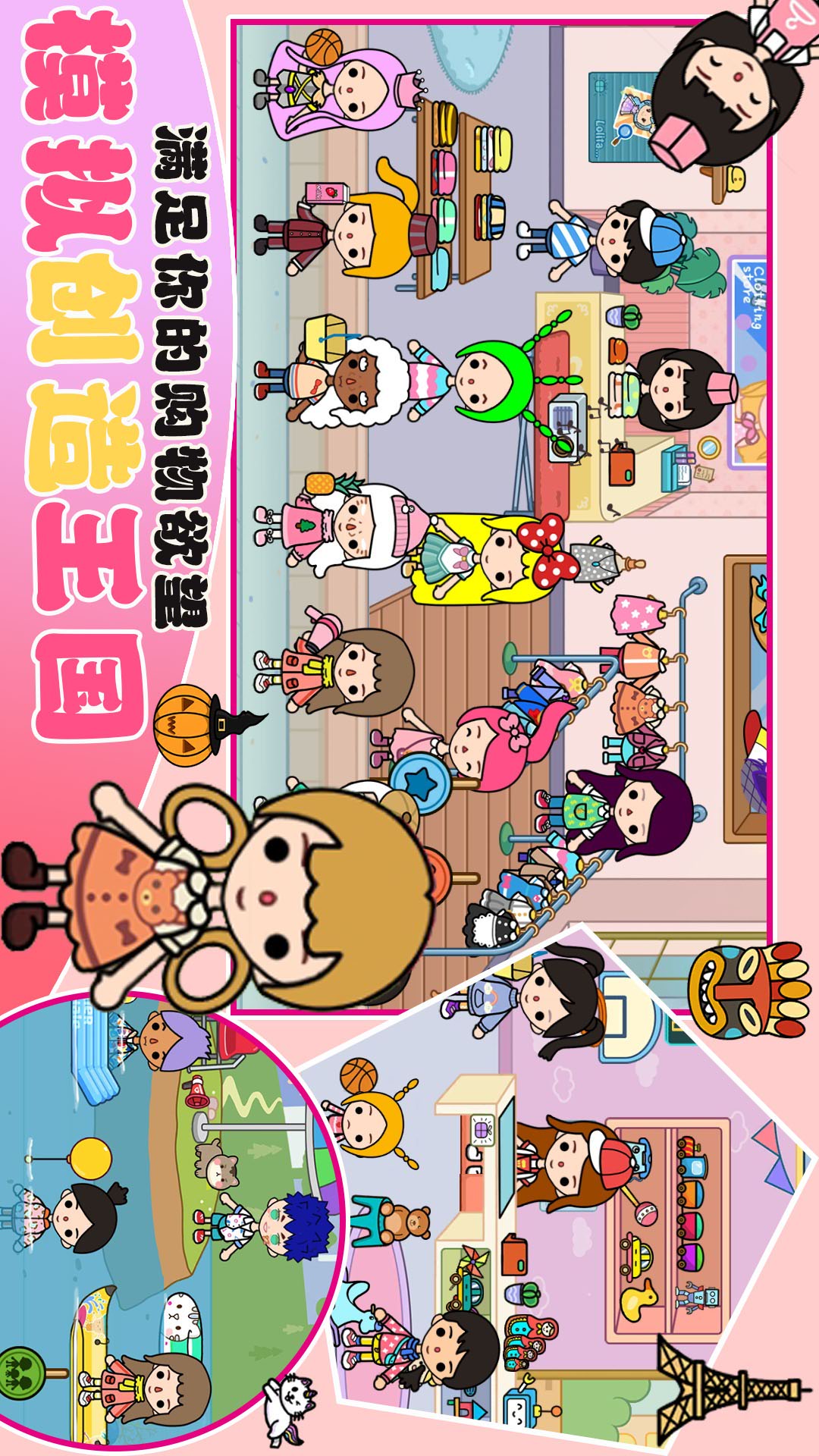 -百种场景:公主城堡、购物中心、游乐园、美装沙龙、水上乐园、度假区(海滩&小岛、观光区)等等......