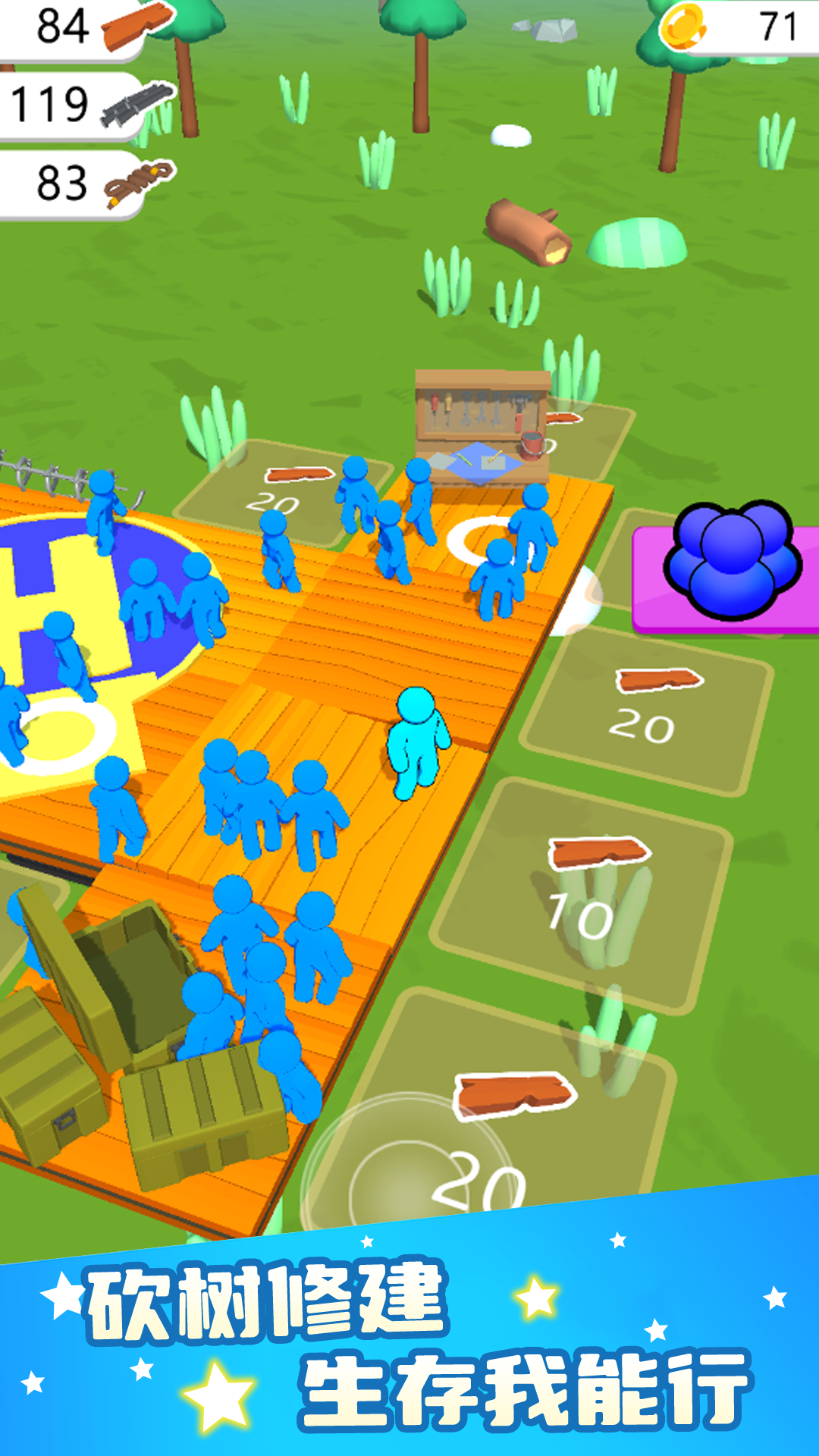 在这款激动人心的游戏中,您将踏上充满乐趣的砍树打僵尸之旅,挑战自己的生存反应能力。这款游戏充满了许多令人兴奋的游戏元素,让您的肾上腺素飙升。一大波僵尸即将来袭,僵尸跑得快,保护自己和其他幸存者,与所有僵尸战斗,在木筏上搜刮、扩张和生存,抵御僵尸海啸!赢得这场战争,在游戏中生存下来!!