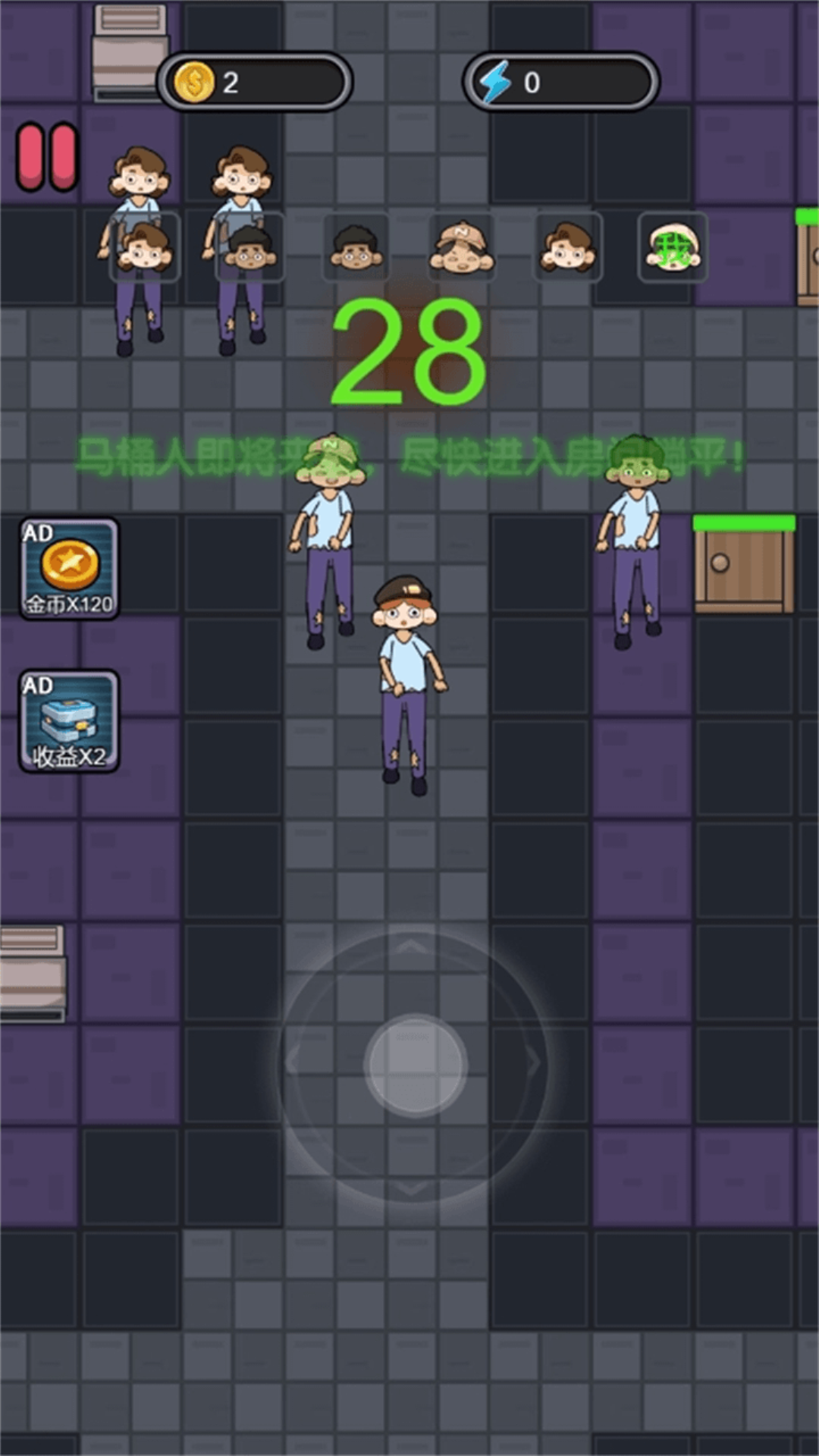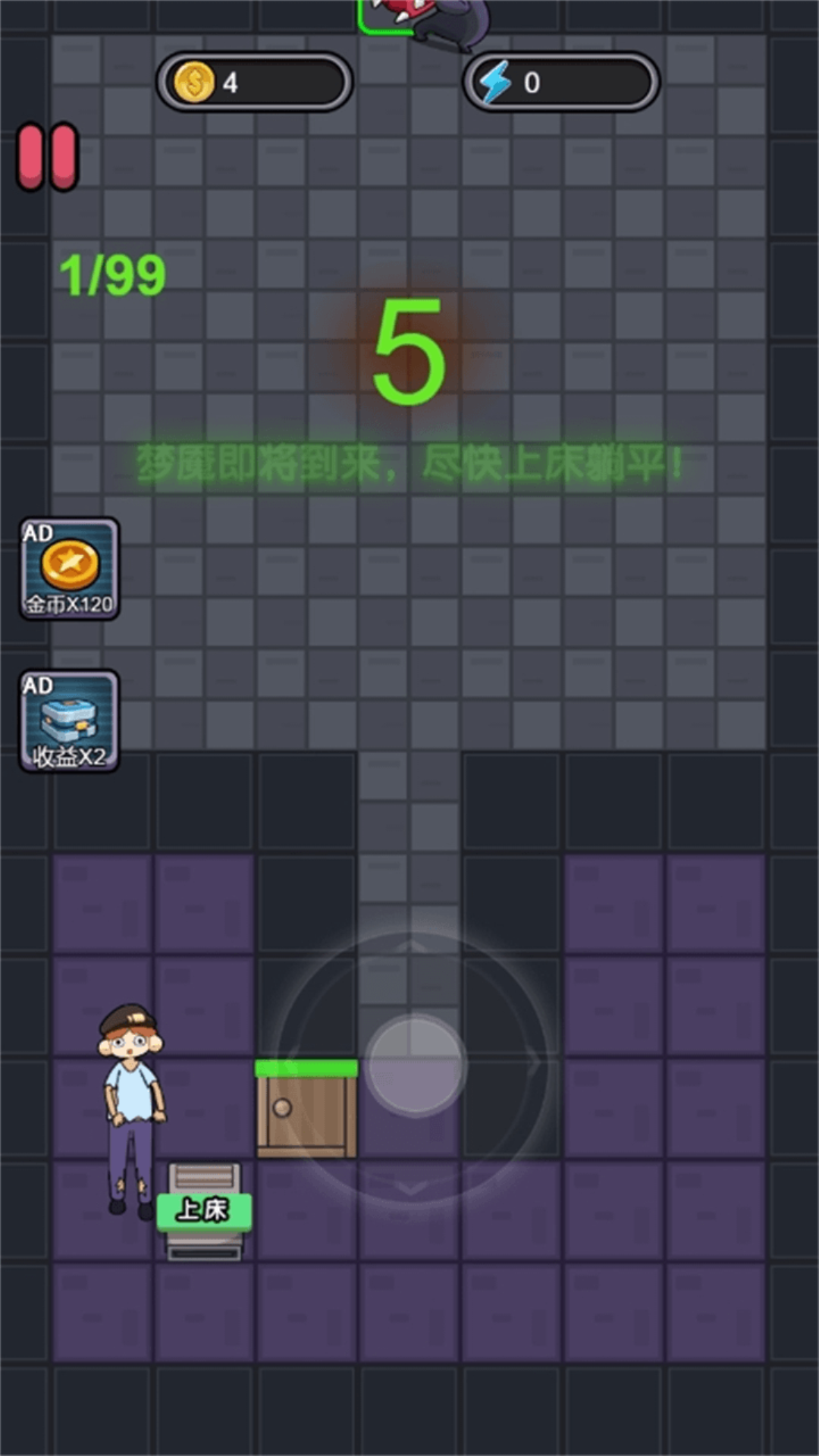一款休闲类生存小游戏,该游戏需要玩家扮演小朋友,在房间内躲避小怪物的追击,躲进安全的宿舍,躺平发育,建造多种建筑,想办法击败小怪物获得胜利。该游戏还有多种趣味玩法,如怪物来啦模式,黎明决战模式等,快来一起试试吧!