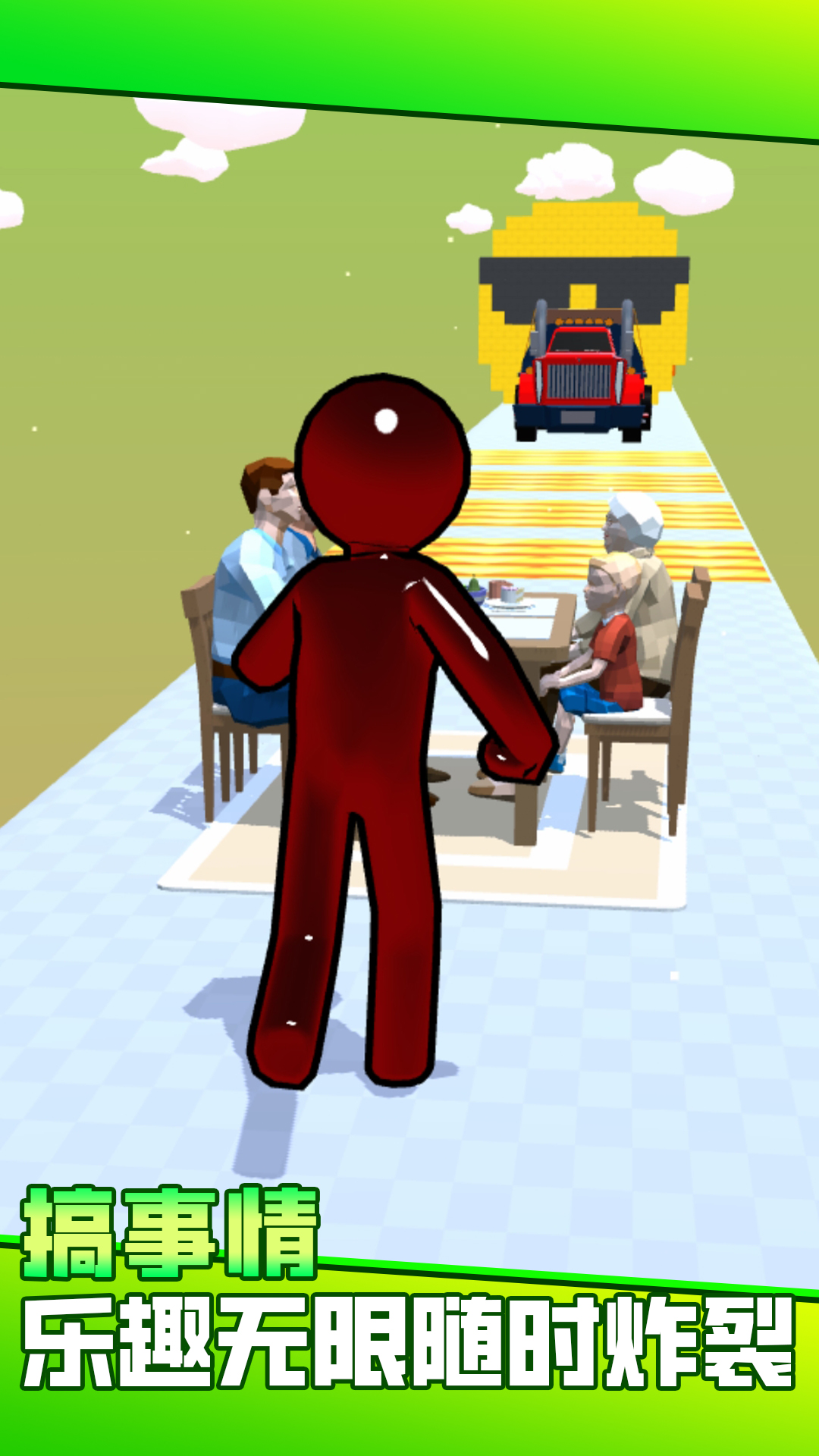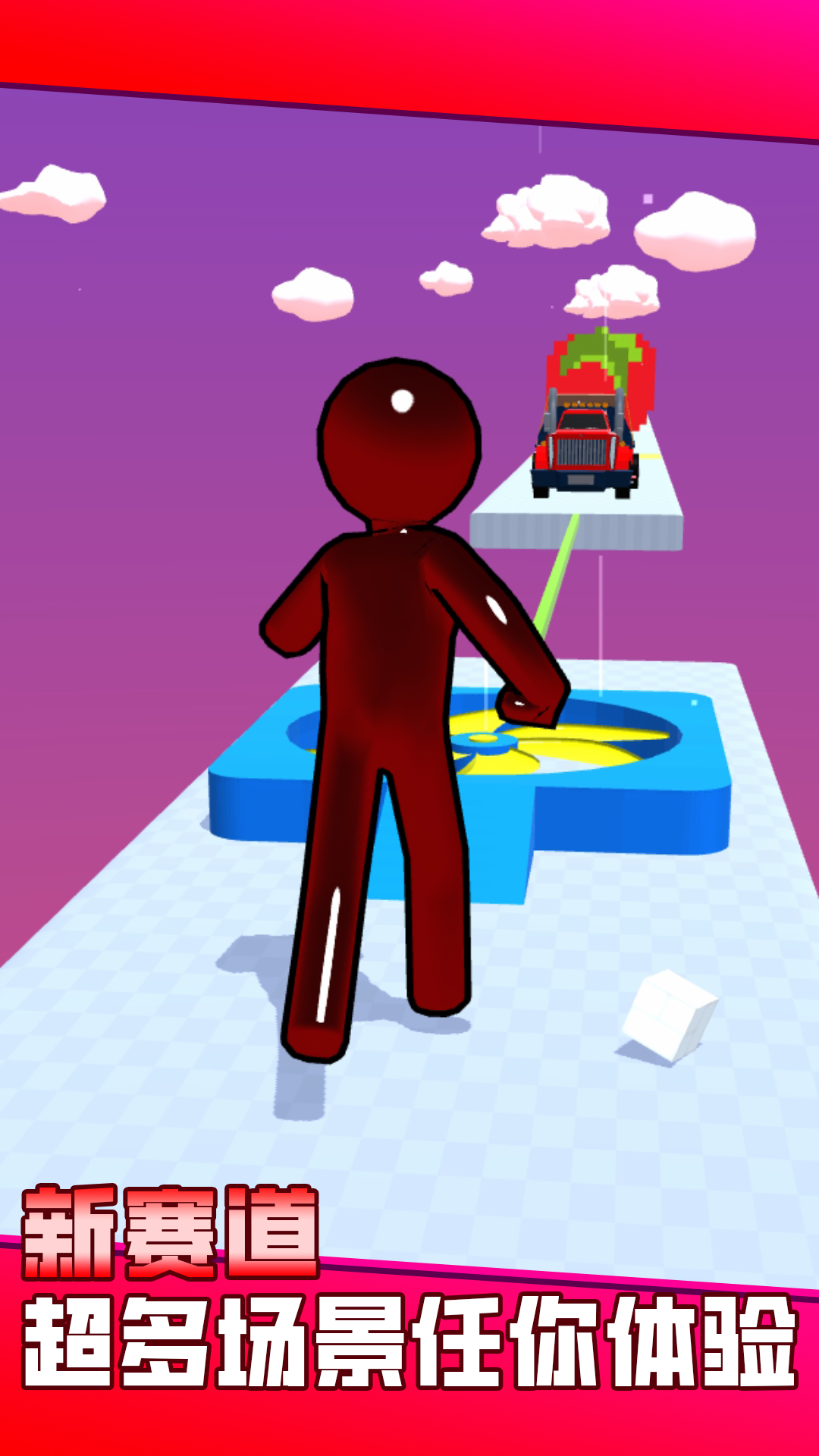 这是一款跑酷闯关的游戏。在游戏中,你只需要控制小人变大变小,避开障碍物越多,你得到的分数就越多。通过避开你前面的障碍和陷阱,跑得越远越好。