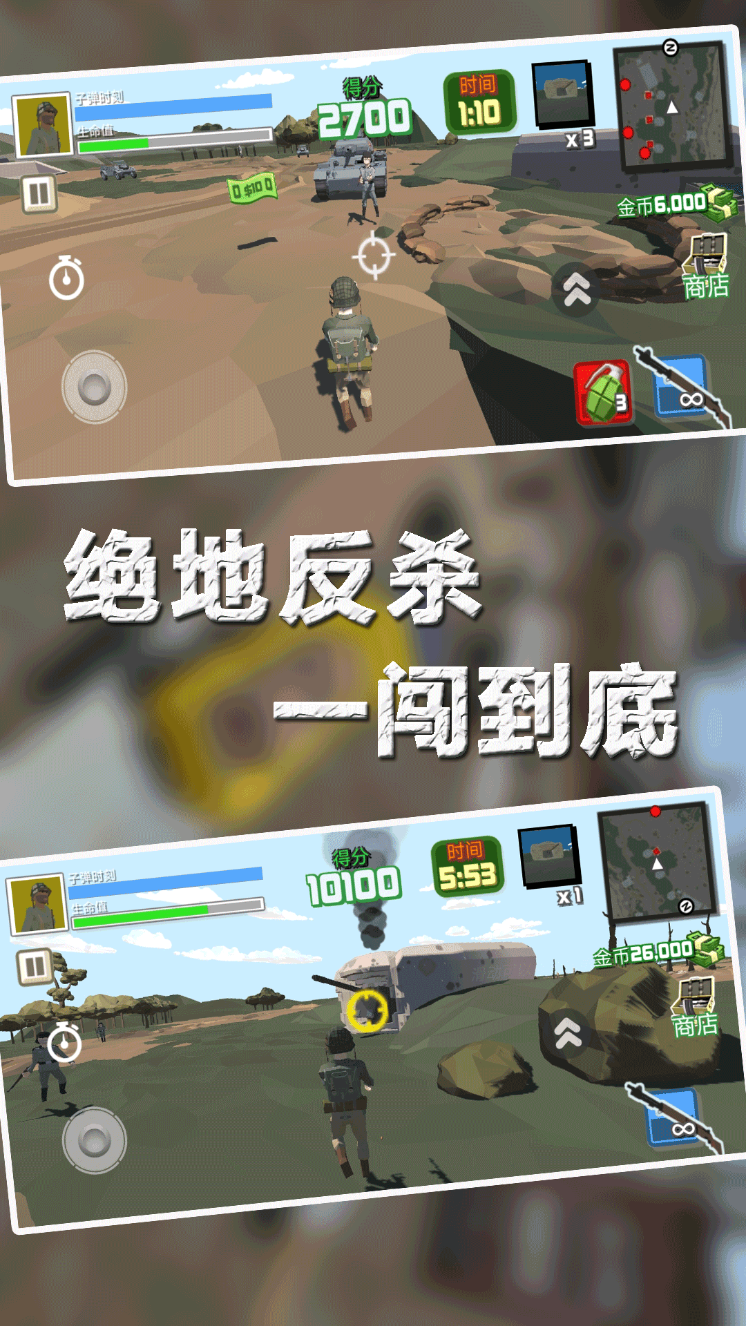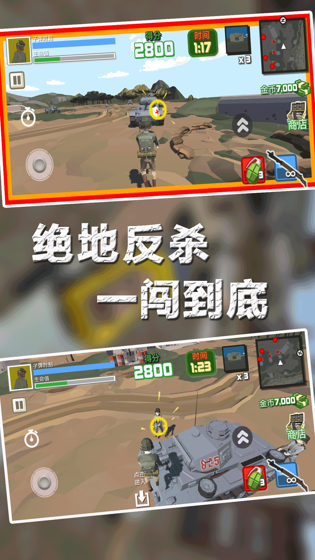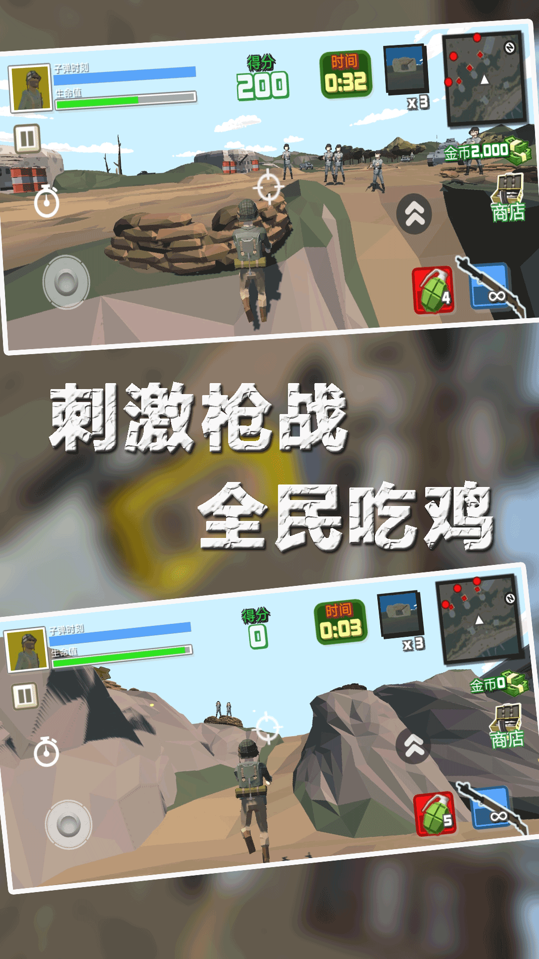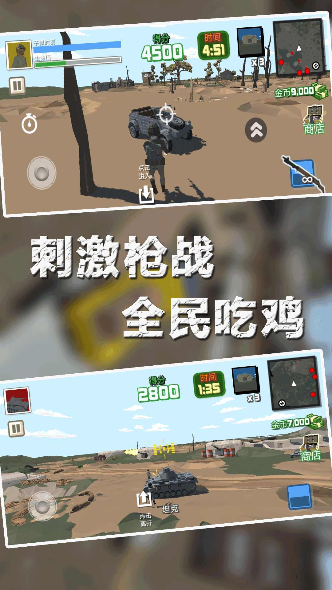 《全民吃鸡枪战》是一款紧张刺激的绝地求生枪战射击游戏!这款游戏拥有精彩刺激的地图、种类繁多的致命武器、绚丽的画面以及开放的世界,玩家需要利用多样的武器与道具淘汰其他人。在游戏中双放阵营进行团队厮杀,收集各种资源,在不断缩小的安全区域内对抗其他玩家,让自己生存下来。团队合作是获胜的关键!