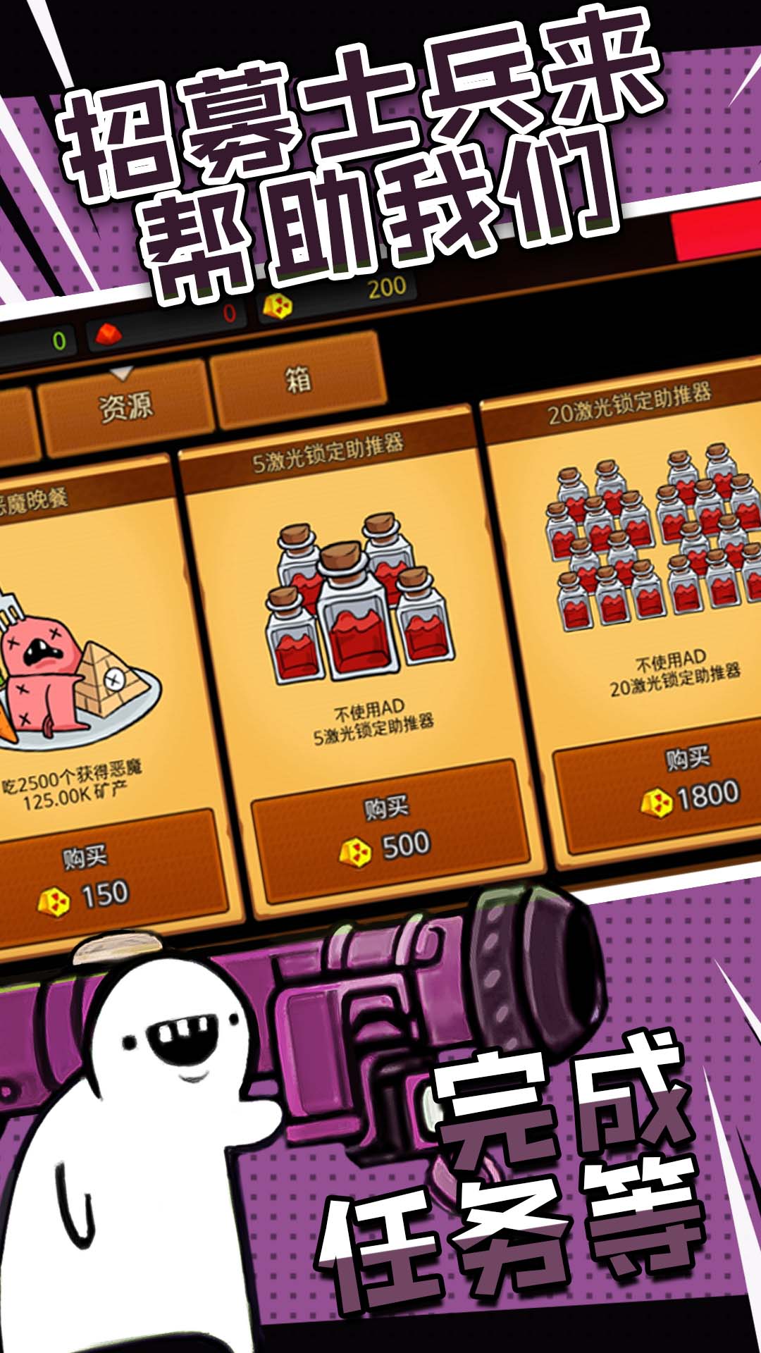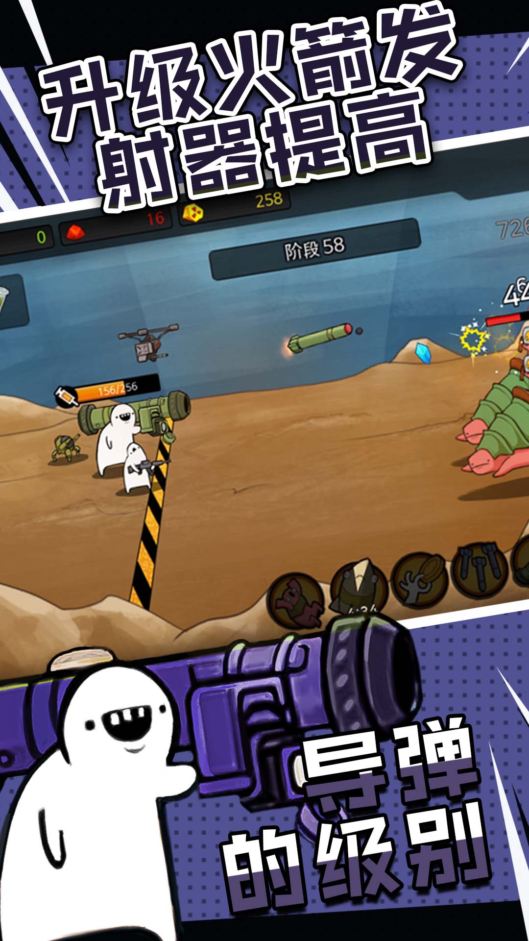 是一款卡通可爱风格的射击游戏,玩家在游戏中可以体验到多种不同的玩法,简单的操作方式,玩家只需要收集导弹,然后用这些导弹来对抗会对你造成威胁的恶魔。击杀所有的恶魔,挑战关卡,升级自己炮塔还有导弹,无限的挑战过程,点击屏幕就可以释放各种技能,每击杀一个恶魔,就可以获取一定的金币,赶紧下载吧。