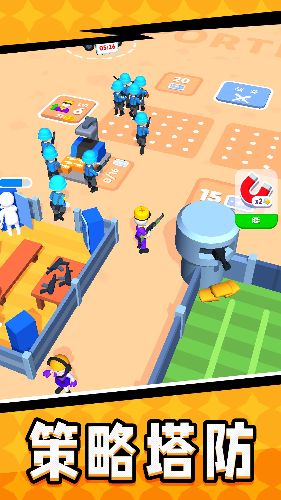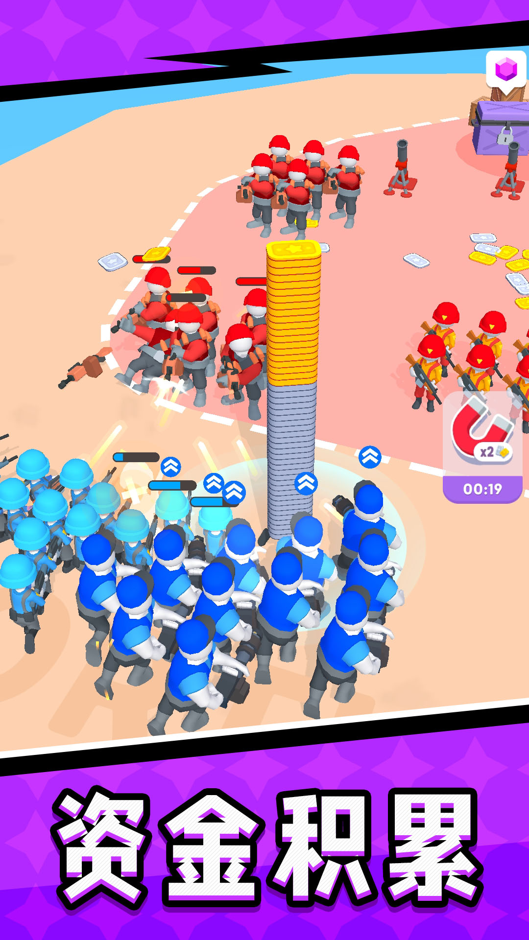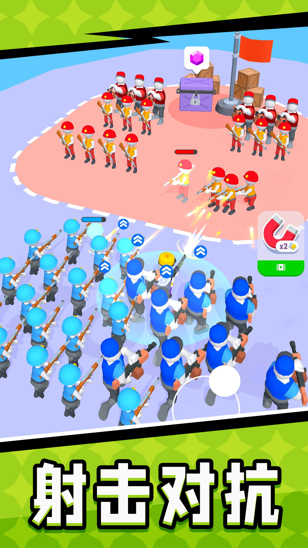一款休闲射击类战斗对局游戏,玩家需要在游戏中组建自己的部队,利用不同的战术和阵容,对抗敌人的进攻,并保卫自己的基地,游戏中有多种不同类型的士兵、坦克和飞机等单位可供选择,每种单位都有其独特的属性和战斗技能。玩家需要根据实际情况,合理地调配各种单位.