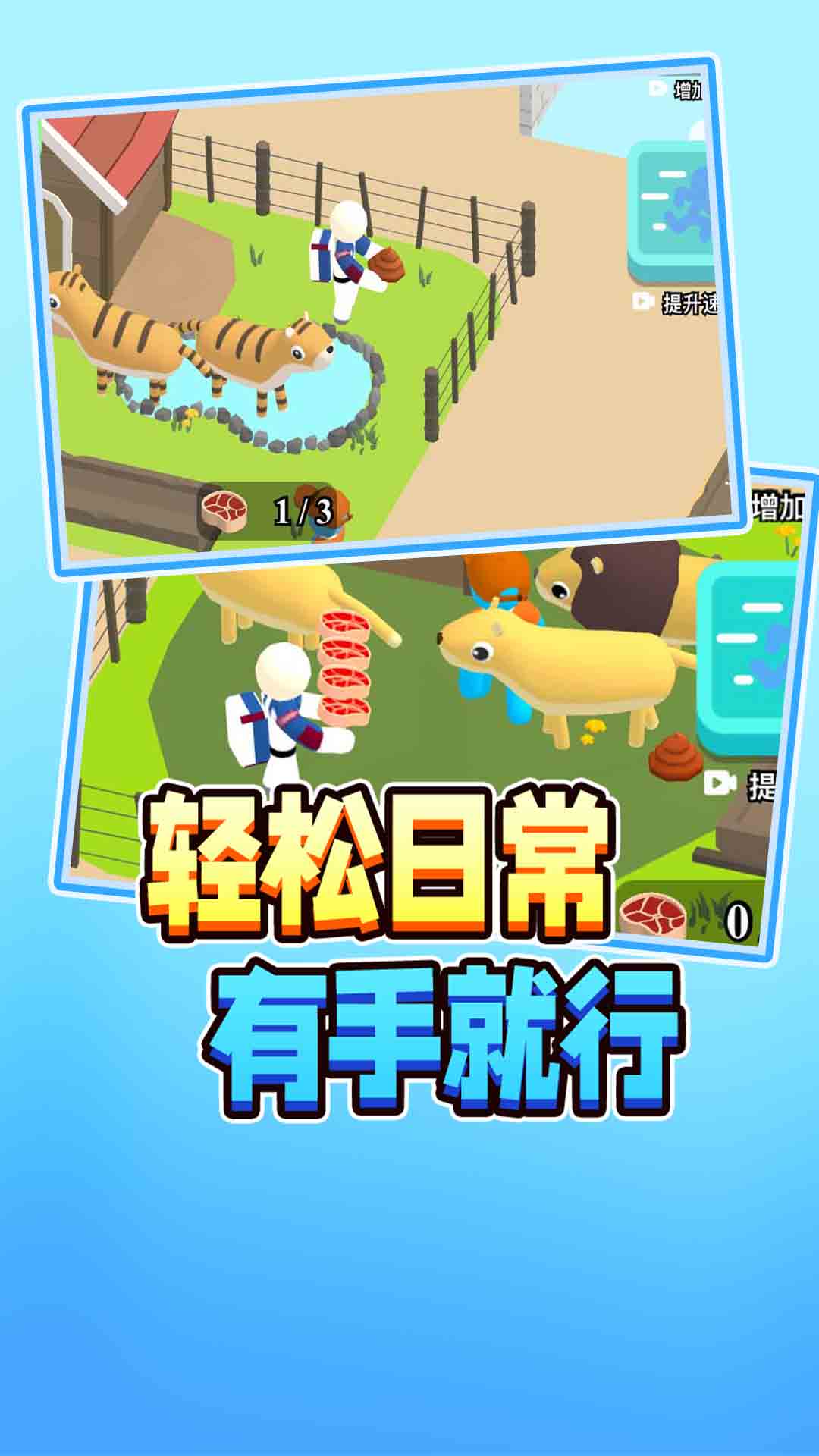 玩家通过喂饱你的动物,打扫动物园,卖门票尽可能多地赚钱!隔一段时间有小偷进入,偷钱和动物,不要让他们从你身上偷走任何东西!你玩得越多,你的生意就越大。扩大并建立你自己的动物园生意,然后赚钱!