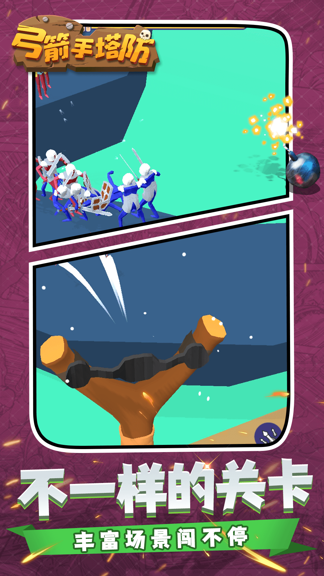 《弓箭手塔防》是一款休闲塔防类手游,玩家能够使用投石机攻击来犯的敌人。弹弓!将骑士、弓箭手、骑兵团和其他火柴人战士扔到战场上来组织强大的城堡防御保护背后的城堡。游戏非常爽快,快来获取下载体验吧!