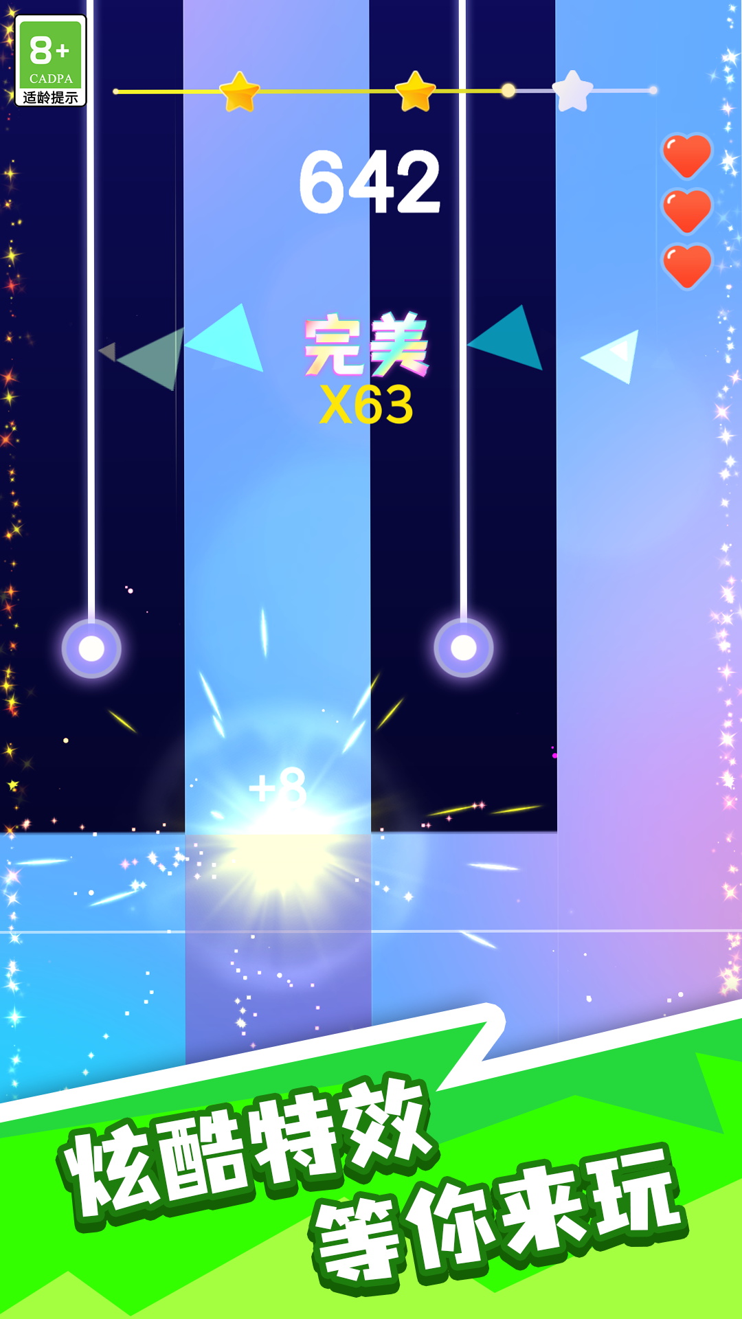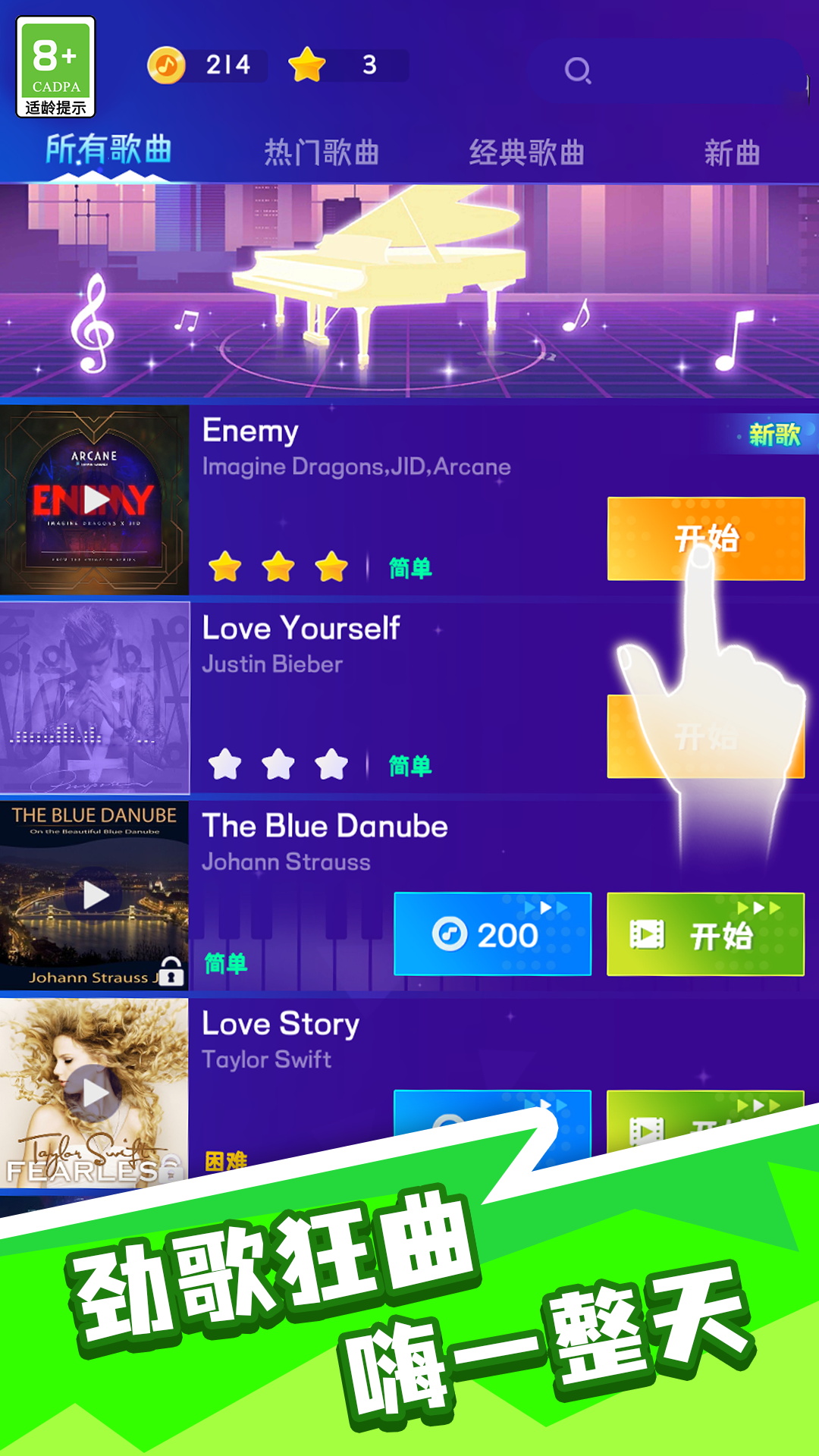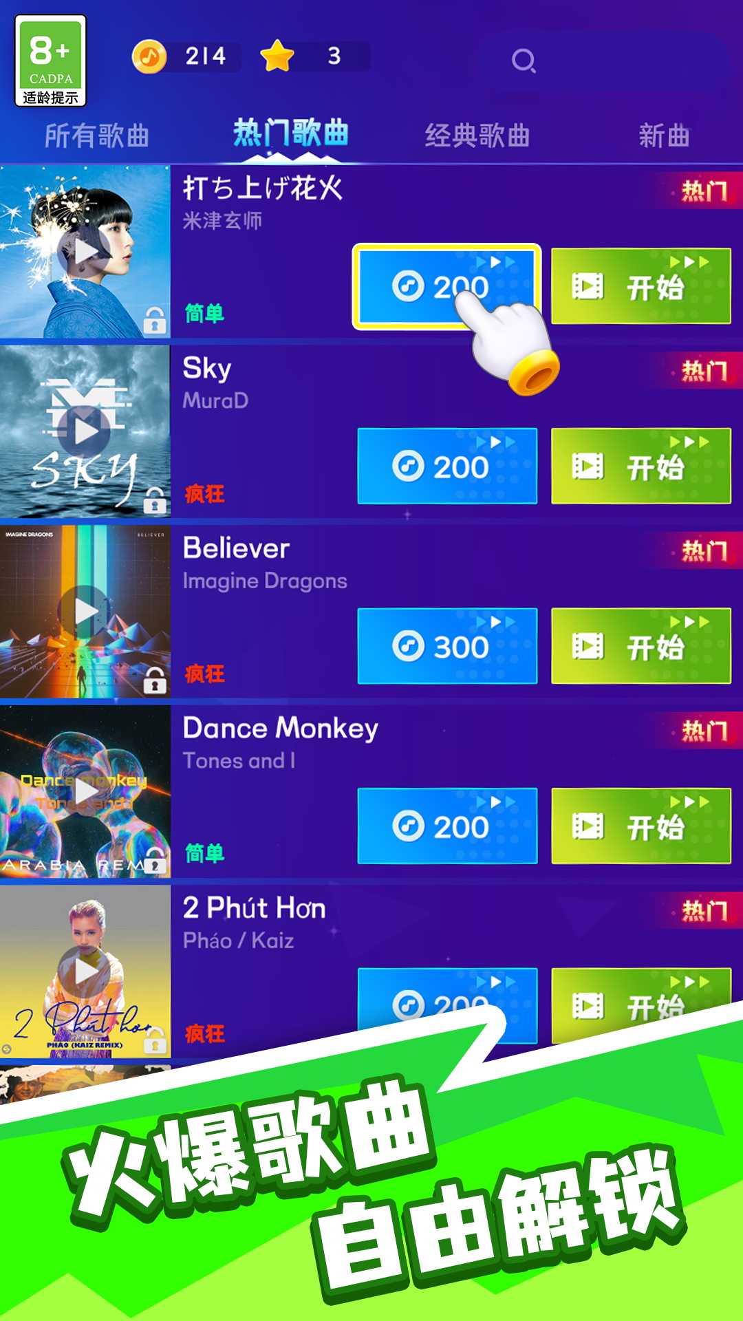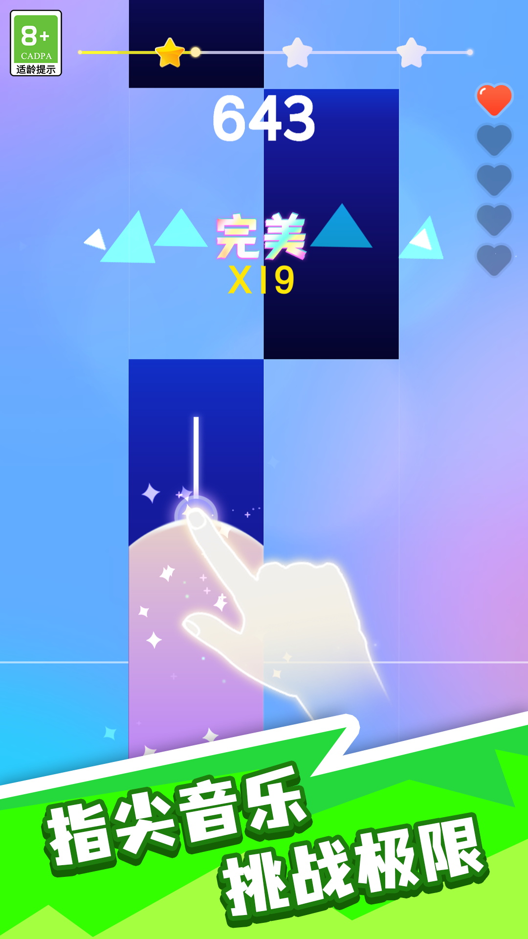 一款音乐节奏类的休闲游戏,玩家需要在游戏中跟随音乐的节奏,通过点击屏幕上的按键来完成各种挑战。游戏采用了独特的音乐节奏系统和随机键位系统,使得同一首音乐也能玩出不同的感觉。此外,游戏还提供了丰富的曲库和多样的语言支持,以及线性调整难度的功能,让玩家可以根据自己的喜好和能力选择合适的难度进行游戏。游戏中的视觉效果也十分出色,包括简洁华丽的视图效果和震撼感超强的爆发模式,都让玩家可以更加投入地享受游戏。
