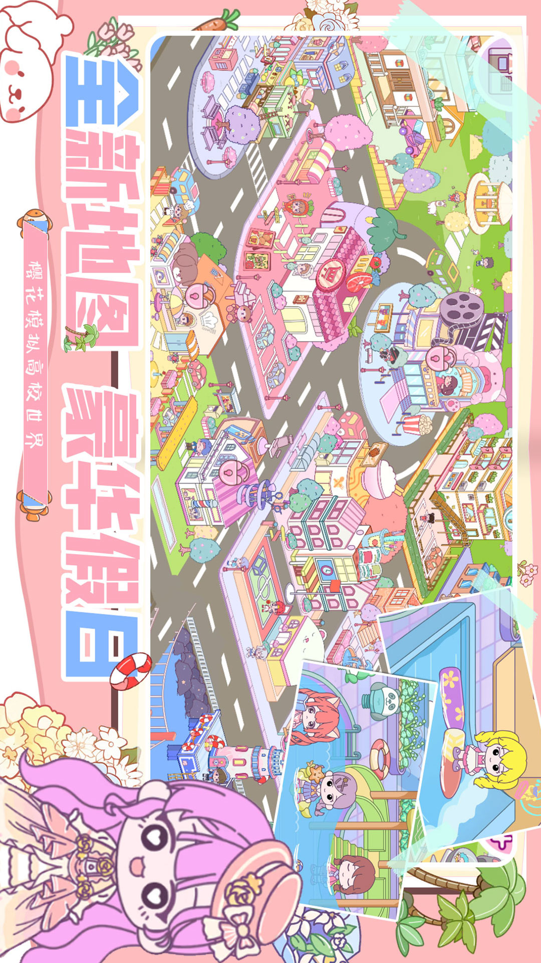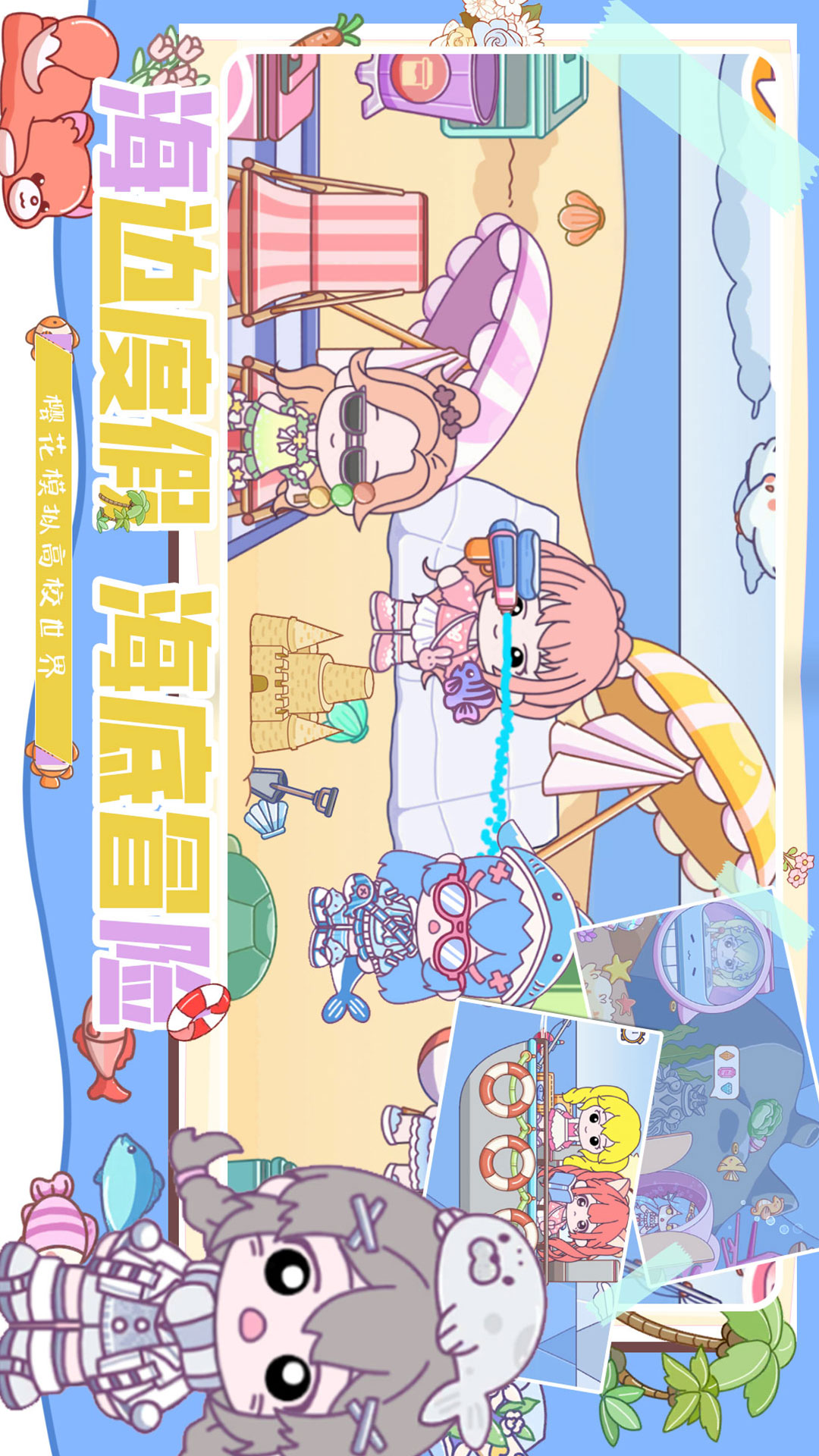 游戏整体定位为南方的海边城市,有棕榈树,阳光,沙滩和各式各样的生活设施,给你不一样的高校生活体验,打造第理想高校世界。在这里,有出售新款式衣服的服装店、时髦的咖啡馆和可爱的宠物店等等真实感十足的场景。
