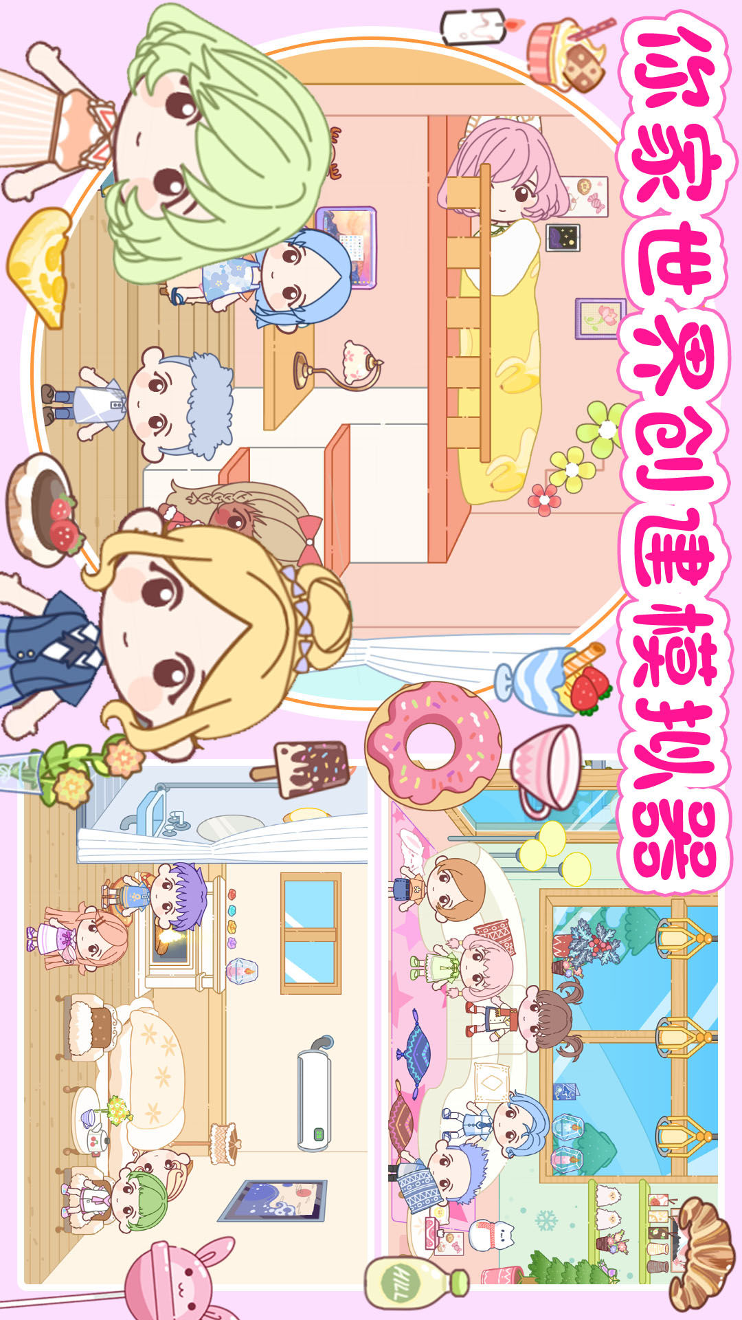 -百种场景:购物中心、游乐园、美装沙龙、家、度假区(海滩&小岛、观光区)、脱口秀现场、综艺演播厅等等......