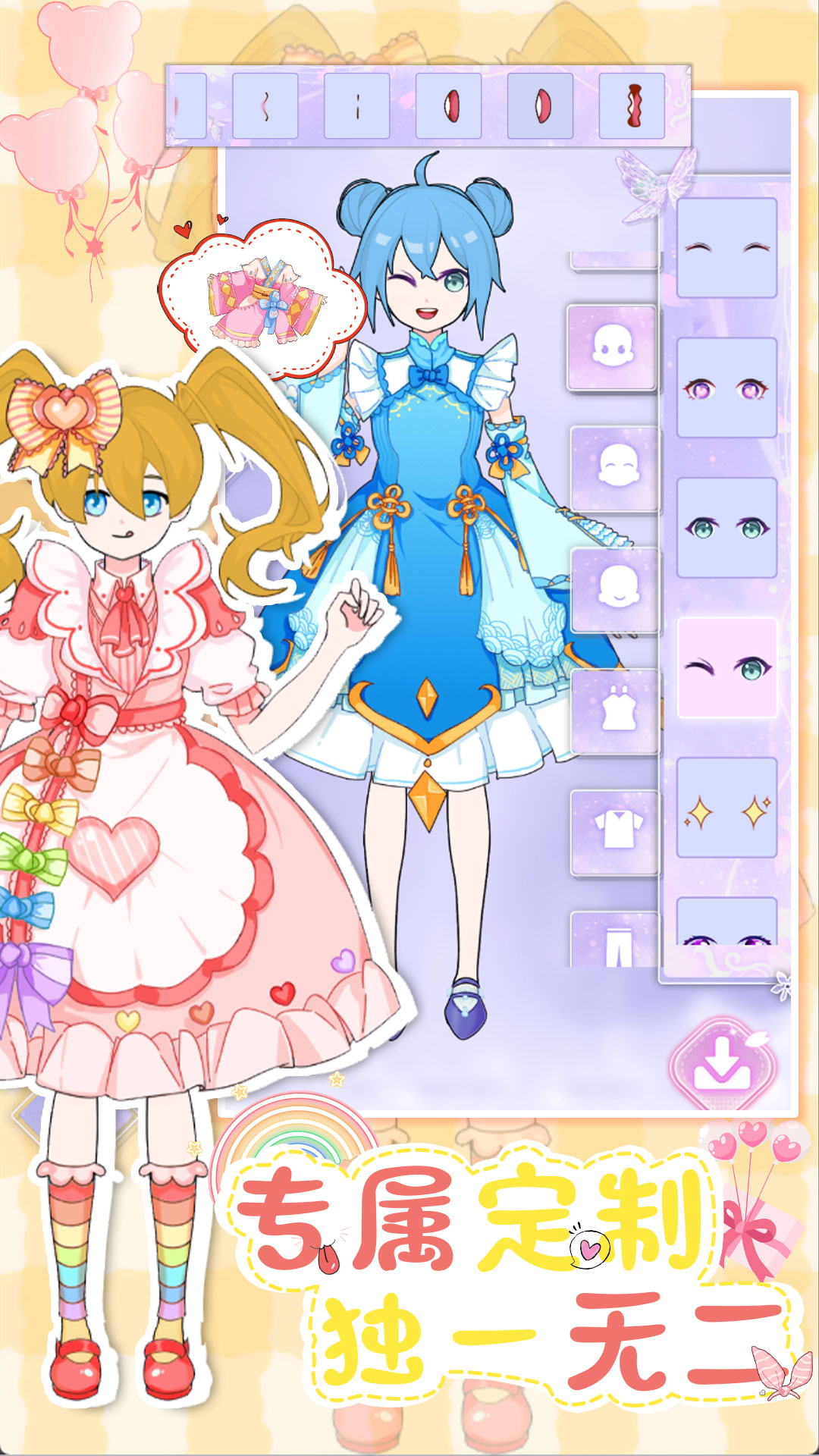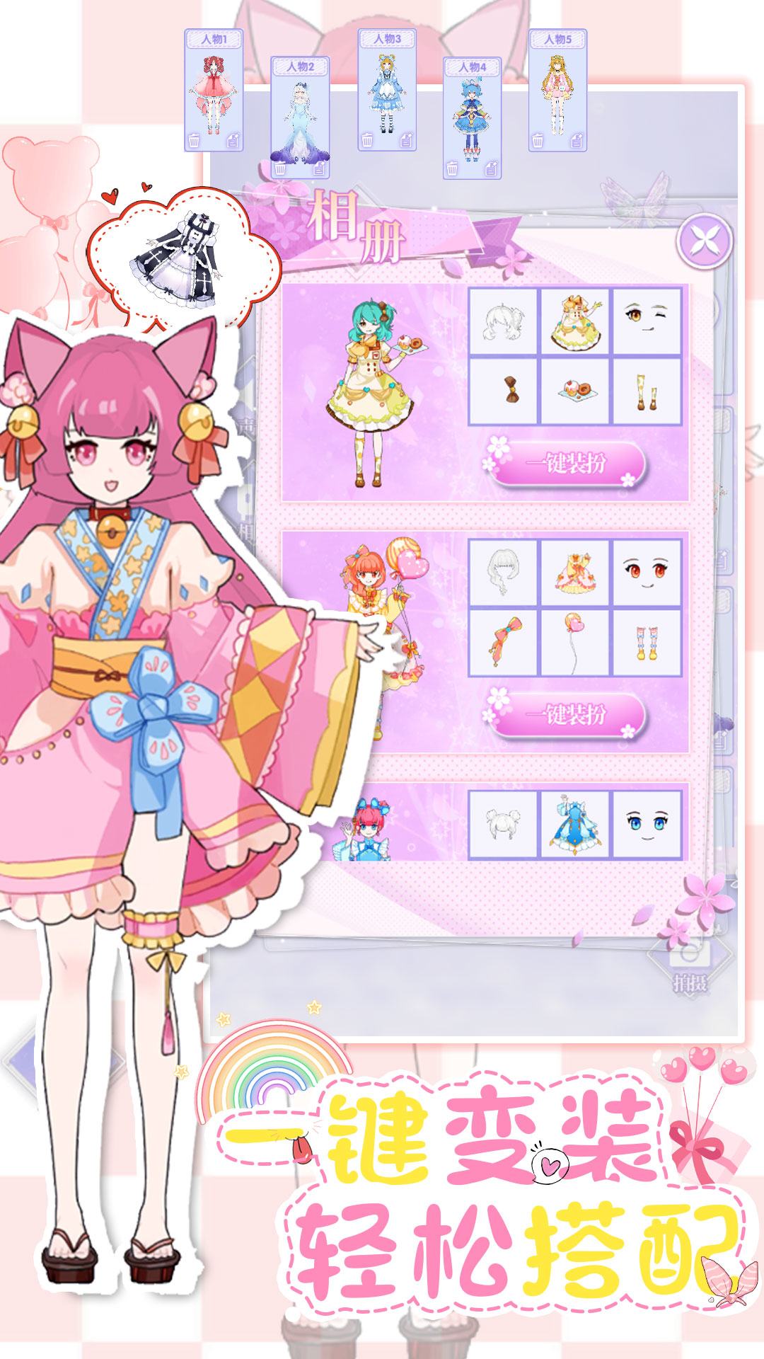 在这里,你可以选择卡哇伊洛丽塔裙、青春百褶裙、优雅长裙等海量服饰,还可以有意外收获:梦幻翅膀、特色贴纸等等小装饰也萌化你的心!