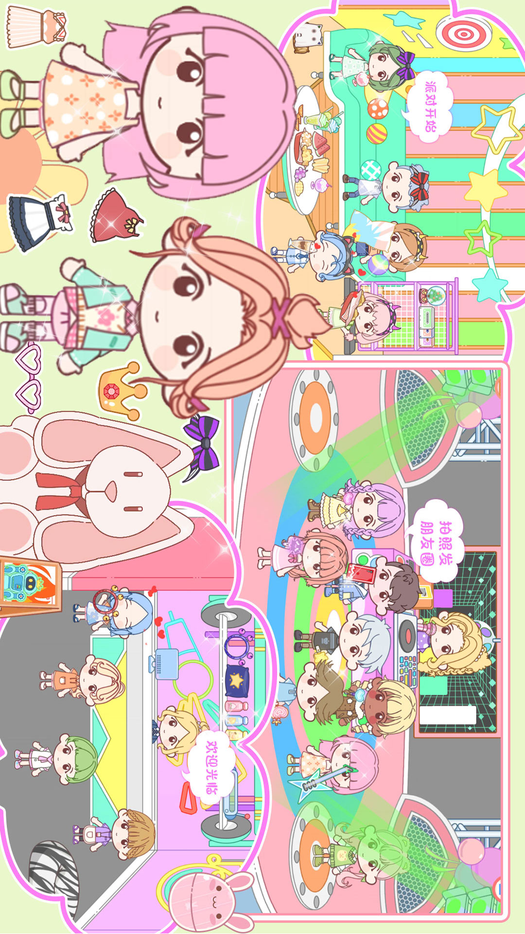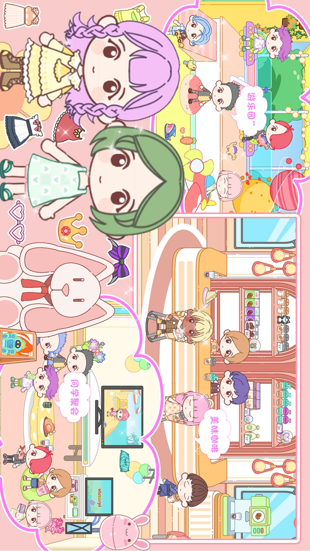 目不暇接的丰富场景,海边小酒馆、周末农家乐、兔子公寓、SPA美容中心,开上敞篷车,一起在托卡小镇认识更多有趣的朋友、享受甜心夏日音乐派对吧!