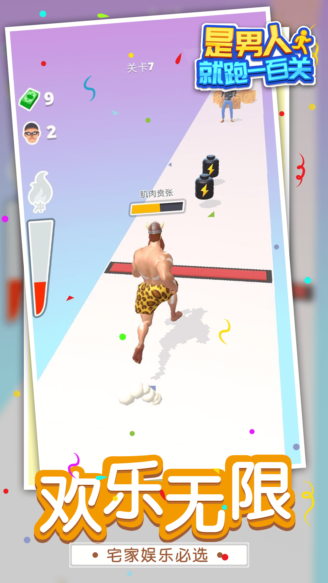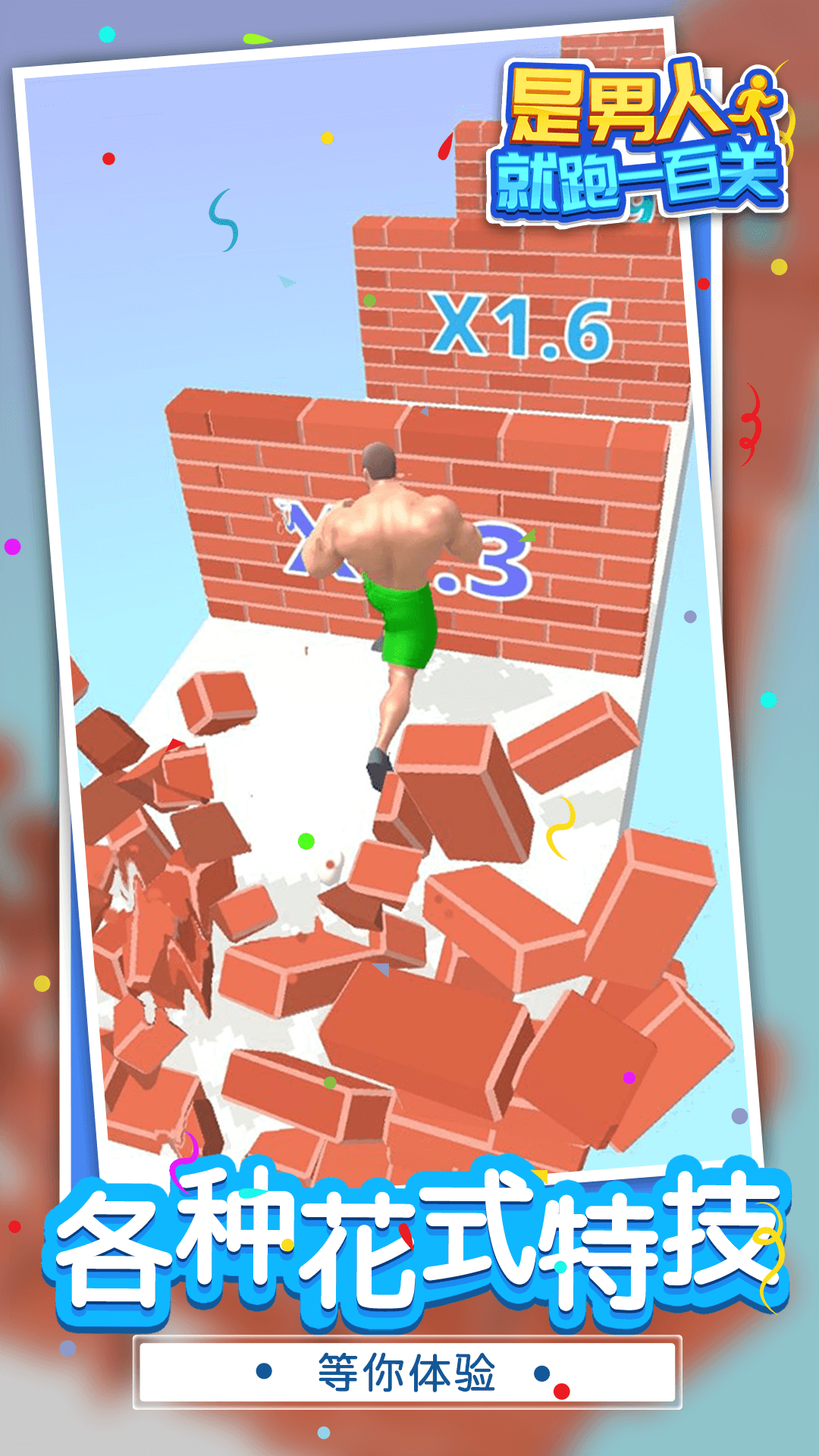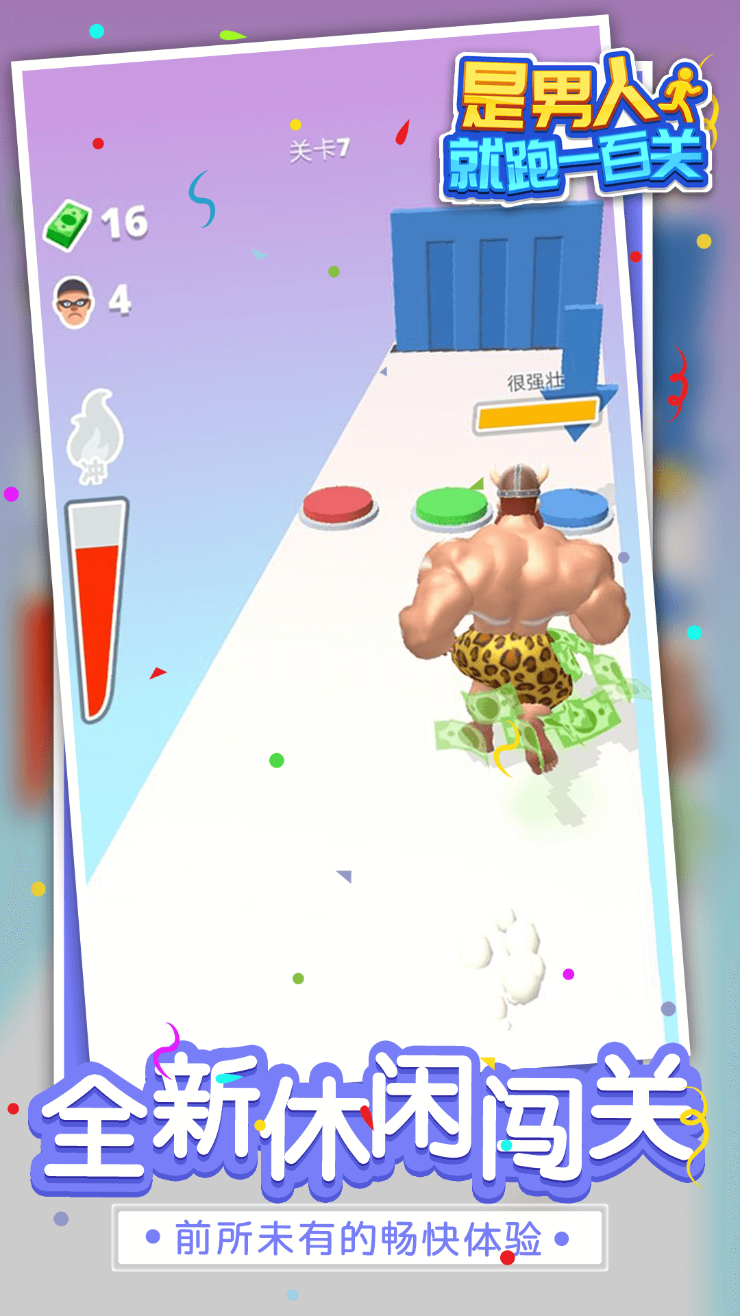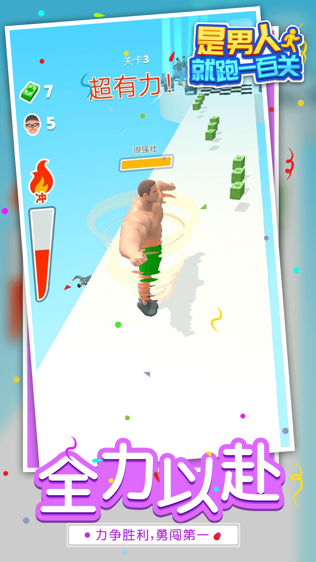 《是男人就,跑一百关》是一款休闲跑酷类型的游戏,玩家可以在这款游戏中控制一个肌肉男开展自己的跑酷冒险。在游戏中玩家需要使用冲撞技能来将堵壁撞开了,让角色在道路上得以继续前进并获取丰厚的奖励。感兴趣的玩家就来这里进行下载和游玩吧!