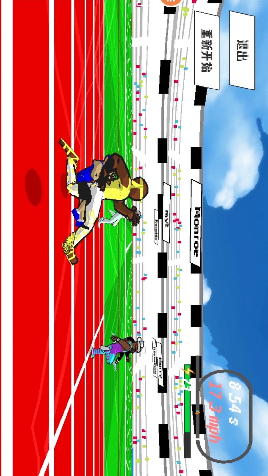 与真实玩家的幽灵赛跑,与 AI 正面交锋,或进行个人计时赛。然后看看你在全球排行榜上与世界其他地方的差距!以电影摄像机的角度观看您的比赛回放,并从 8 个色彩缤纷的预设中选择体育场主题!