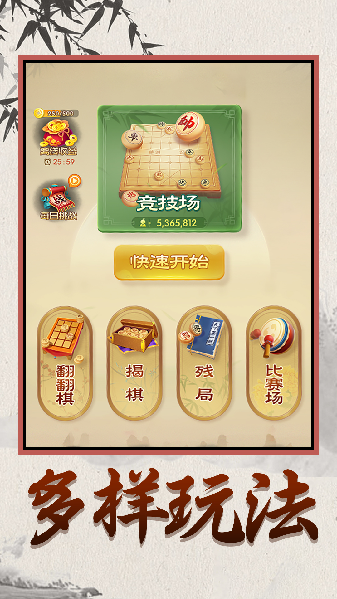 一款怡神益智有益身心的游戏。象棋集文化、科学、艺术、竞技于一身,不但可以开发智力,启迪思维,锻炼辨证分析能力和培养顽强的意志,而且可以修心养性,陶冶情操,丰富文化生活,趣味性极强。