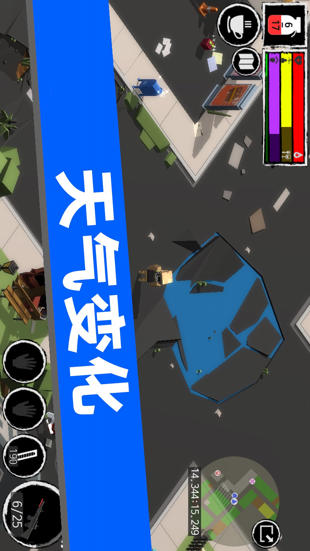 一些幸存者通过探索自己的物品并试图生存,在战斗发生时保护自己。被病毒复活的丧尸非常危险,但它们的视力很差,对声音却很敏感。他们没有理由,充满敌意,与丧尸战斗。残缺不全的丧尸要特别小心。