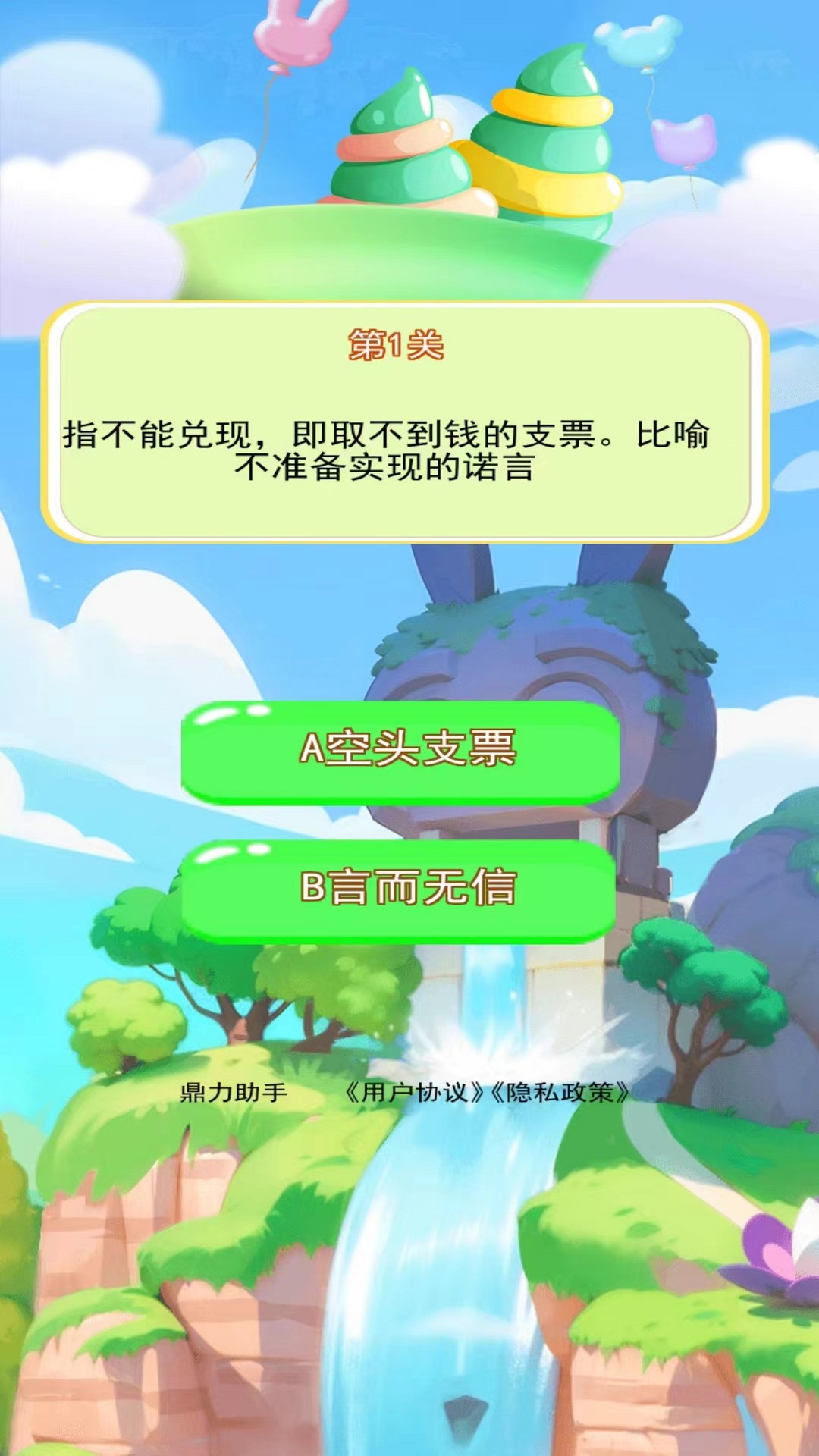 《鼎力助手》是一款由内蒙古鼎力公图教育咨询有限公司开发的猜谜工具。这款工具包含有丰富的谜语资源,在您休闲放松之时,它能够助力您丰富知识储备,快来体验一下吧!
