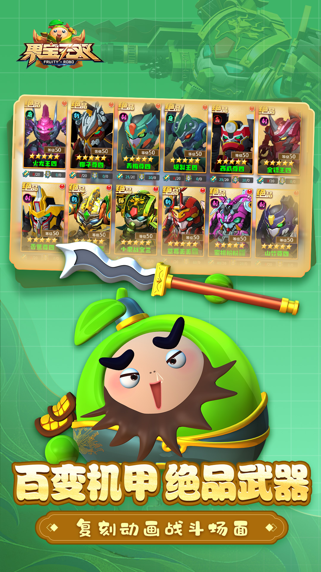 《果宝无双》乃是一款以国产经典动画《果宝特攻》形象为原型制作的手游,它获得了正版IP授权,属于3D机甲格斗类型。在这款游戏里,汇聚了《果宝特攻》中的经典动画元素,多达上百款的机甲角色被原汁原味地还原出来!在各式各样的战斗场地之上,玩家能够采用不同的战术组合,操控机甲并施展华丽的战斗技能,进而体验到战斗模式极为流畅且充满打击感。玩家还可以收集并养成机甲角色,携手打造最强的果宝战队,这极大地满足了动画粉丝对果宝战甲的喜爱之情,为他们带来独一无二的战斗体验!