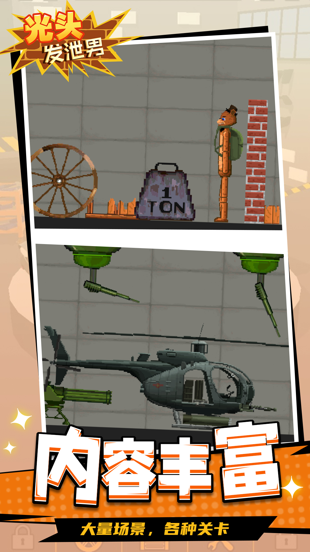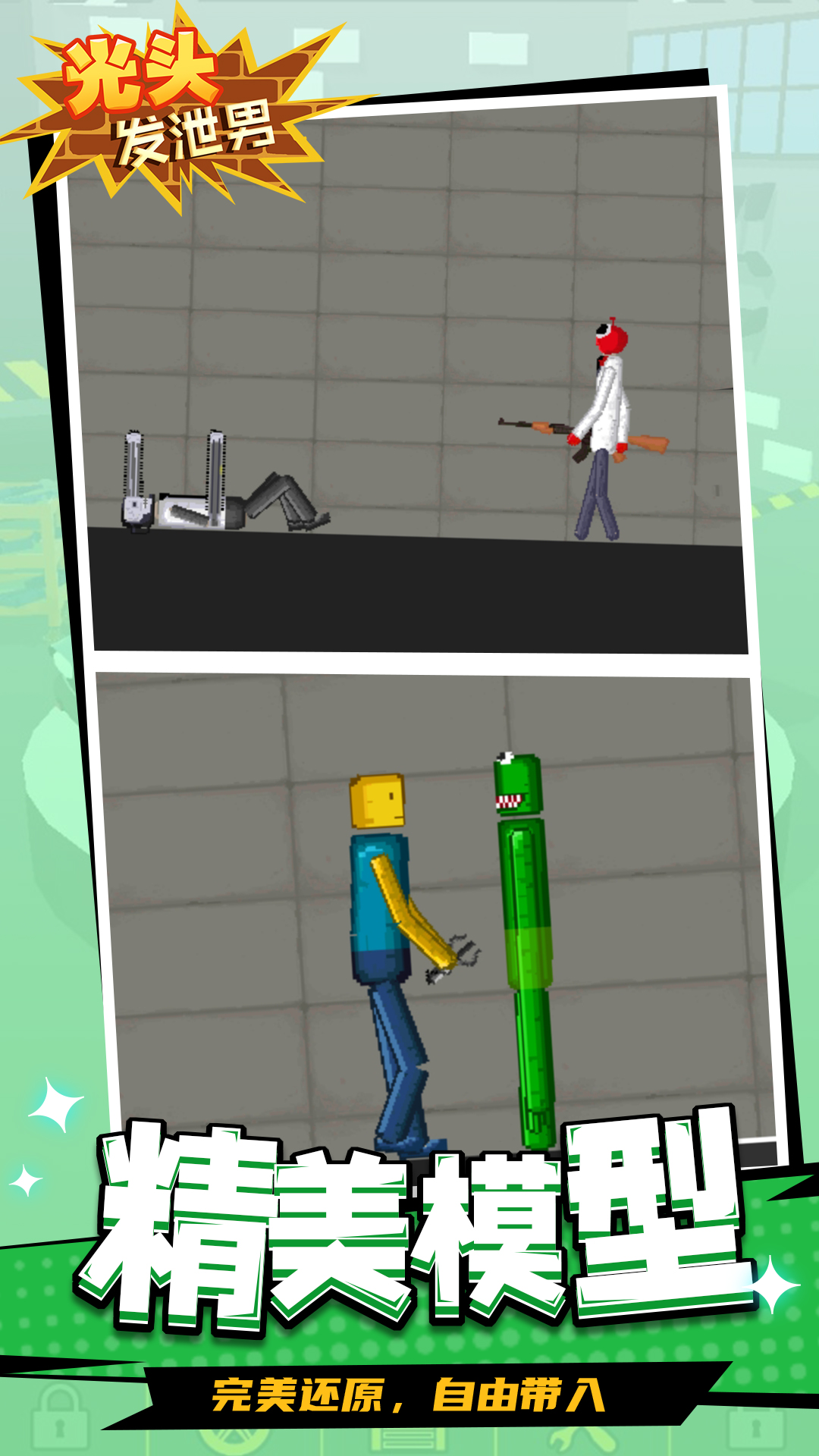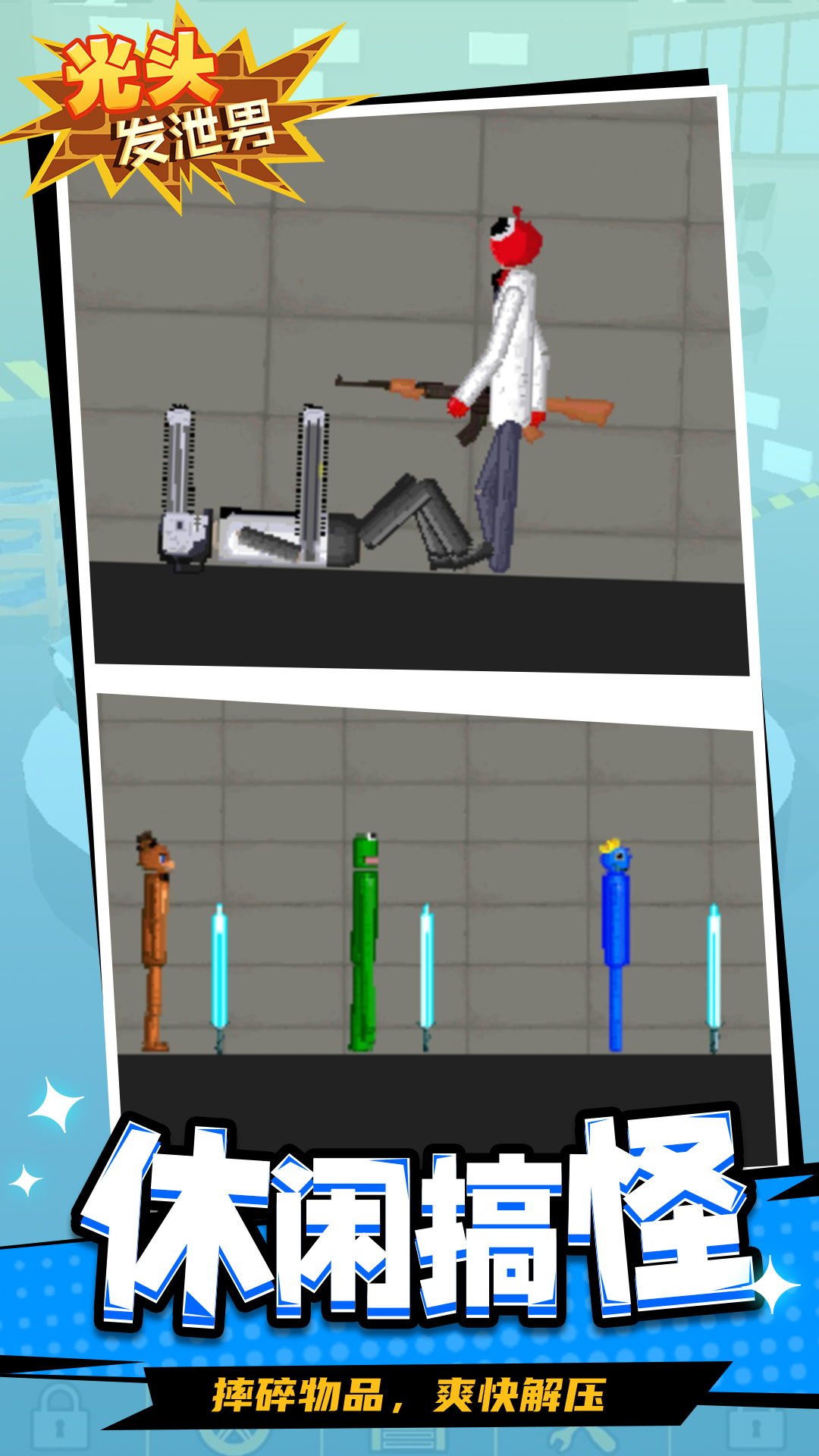 《光头发泄男》包含有趣的动作系统和解谜元素,控制火柴人拳击击败关卡中的敌人,感受独特的闯关乐趣。游戏还拥有众多好玩的角色造型,参与闯关,成为一拳超人吧。这是你以前所未有的方式施展拳脚的大好机会!用拳头猛击敌人,直到将其打败! 闯破烧脑的难关。观察周围的环境,利用手上的武器,一次性歼灭敌人。 突破城墙,挖战壕,引爆炸弹,设法打败敌人。快来下载《光头发泄男》,感受独特的闯关乐趣吧。