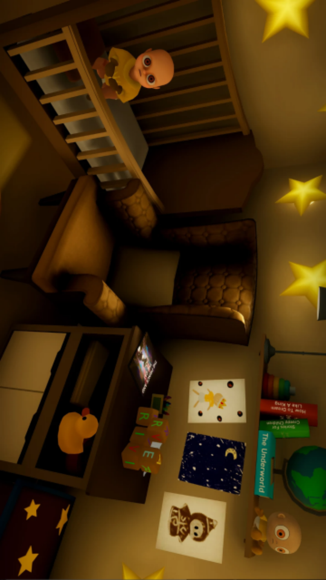 黄衣宝宝模拟可以体验照顾宝宝的情景模拟,在这里你感受照顾宝宝的乐趣。打开大门,走进屋子里寻找黄衣宝宝,抱抱他,哄哄他,帮他换尿布,总之就是照顾好这个宝宝。