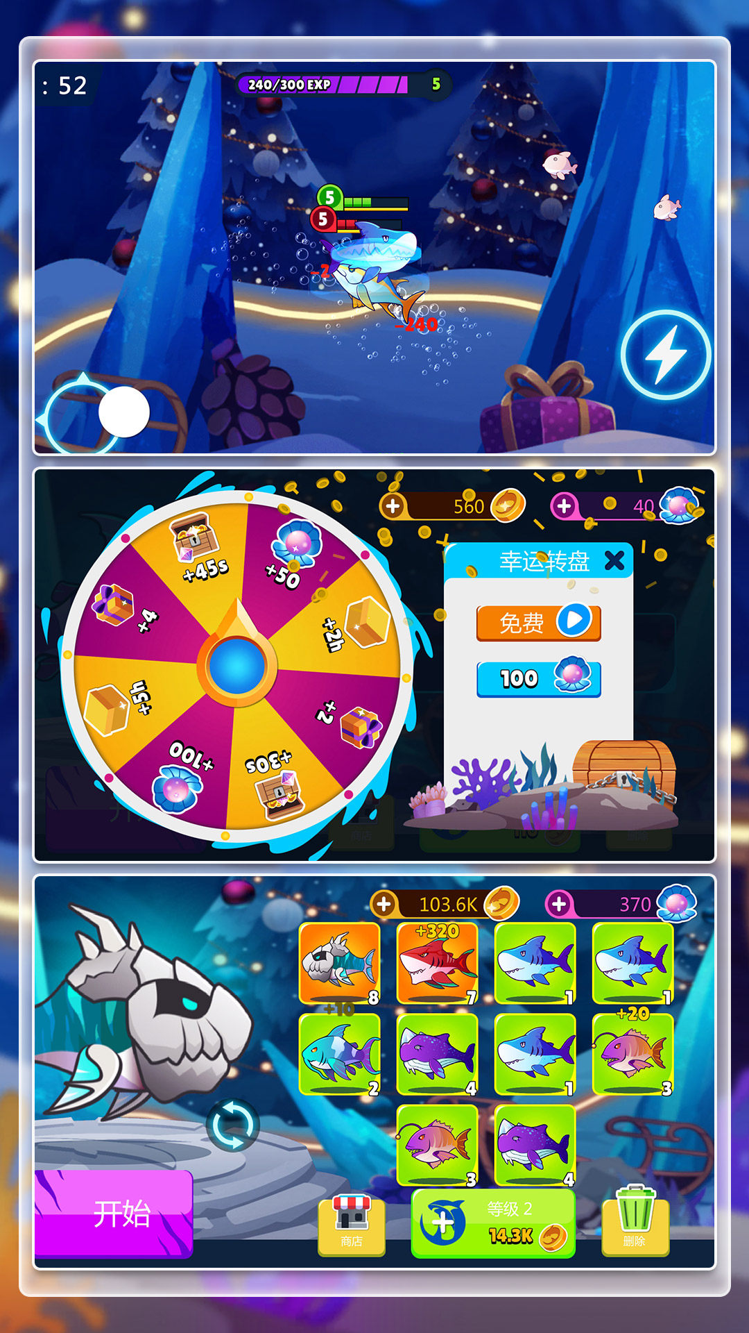 游戏是一款大鱼吃小鱼的经典捕食体验。你需要在海洋中不断吞食比自己小的鱼来增加运动,让自己成长为真正的深海霸主。而且游戏中有不同的风格可以让你自由挑战,每一个都有自己独特的玩法可以体验。