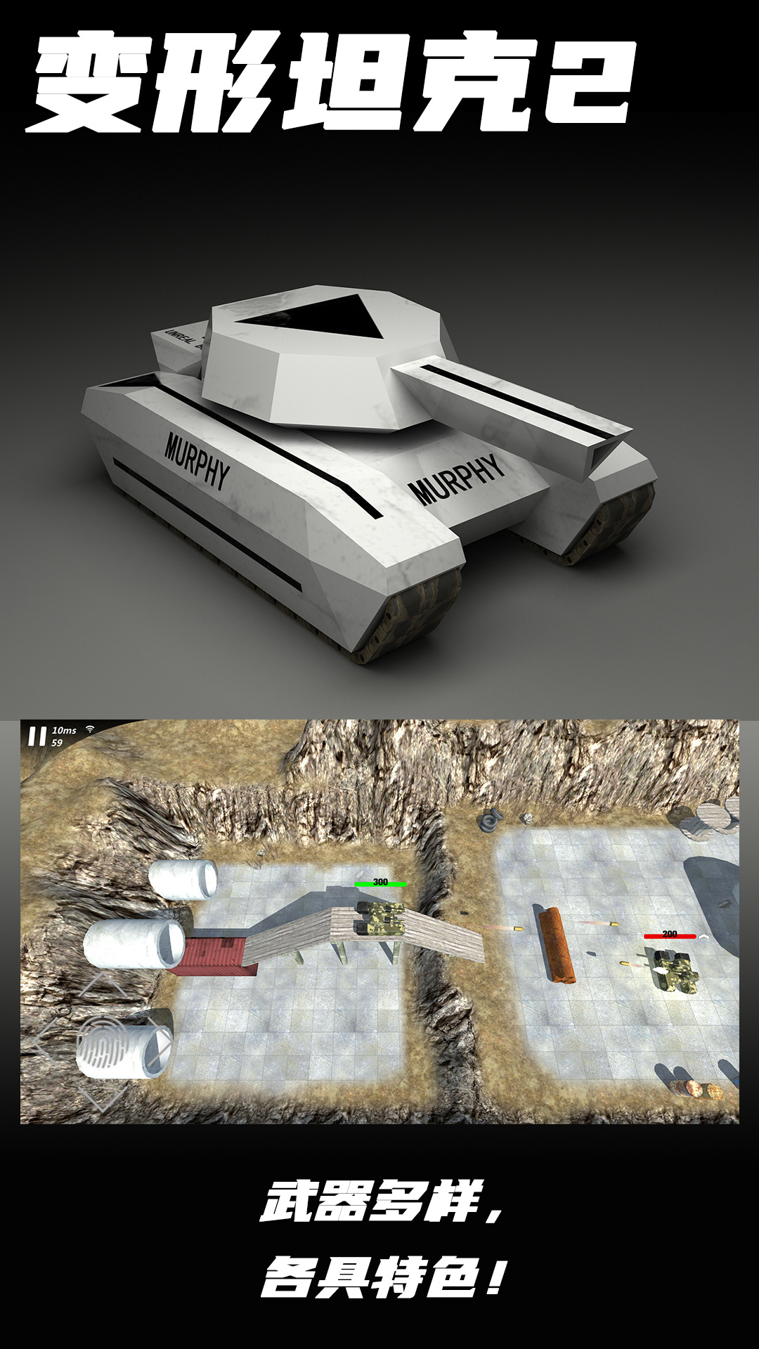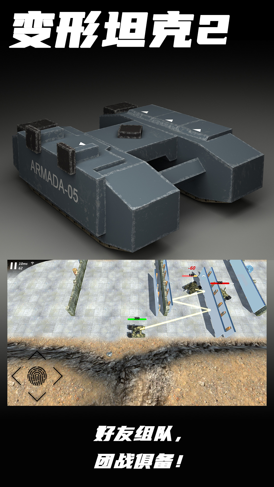 变形坦克2是一款基于3D物理学,拥有真实物理碰撞及特效的坦克游戏。坦克能够爬坡,翻越障碍,拥有技能,并且能够炫酷变形!