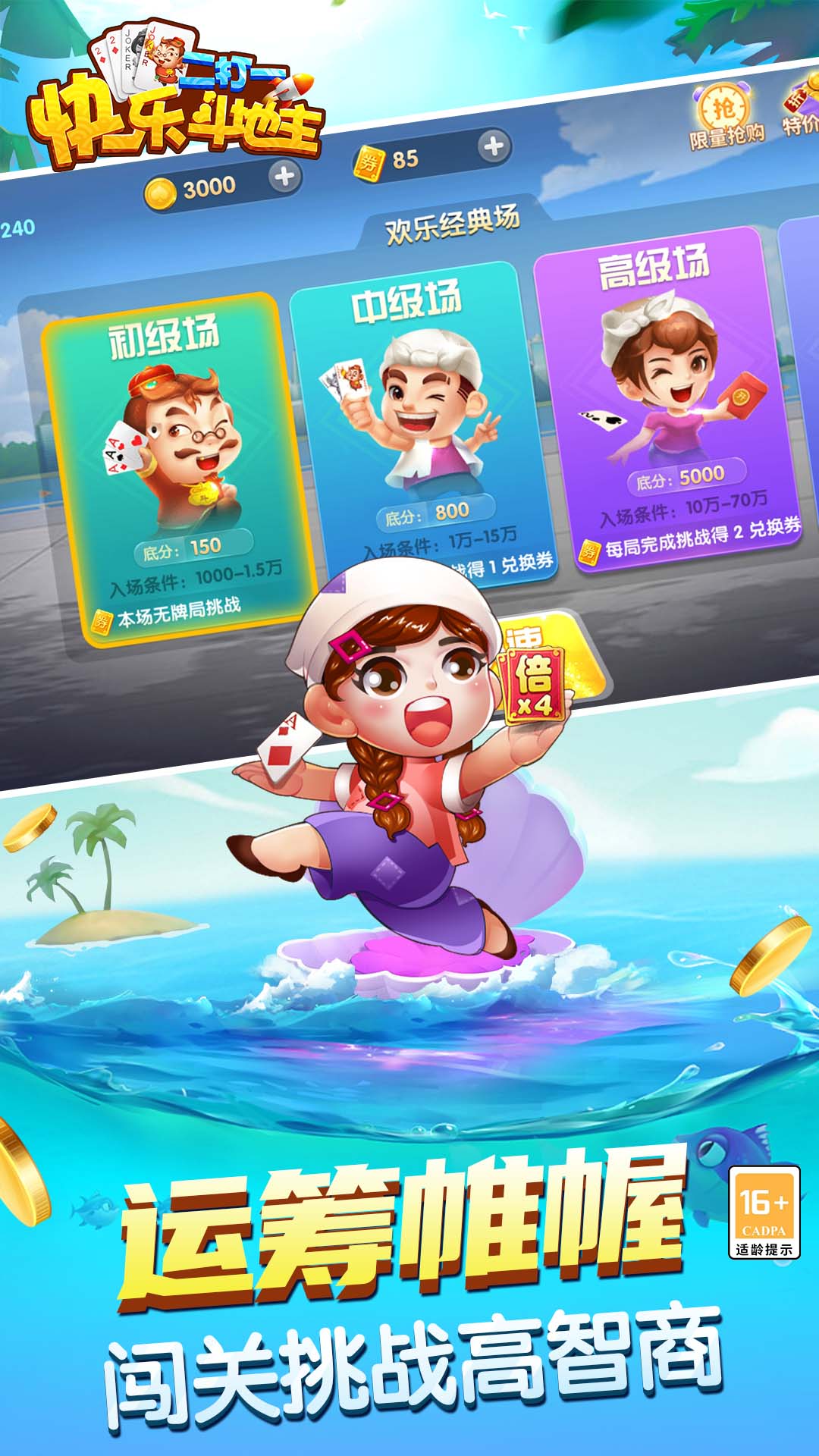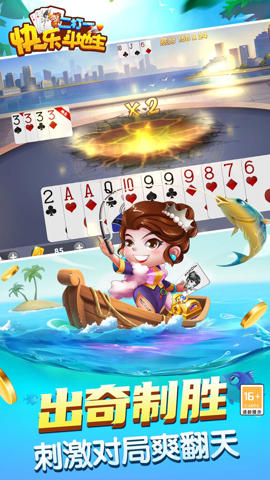 新用户登录就送,每天福利拿不停。免费畅玩,领金币、破产补助,无需充值玩到嗨!真人实时竞技,花样玩法乐趣无限尽在《快乐斗地主二打一》!