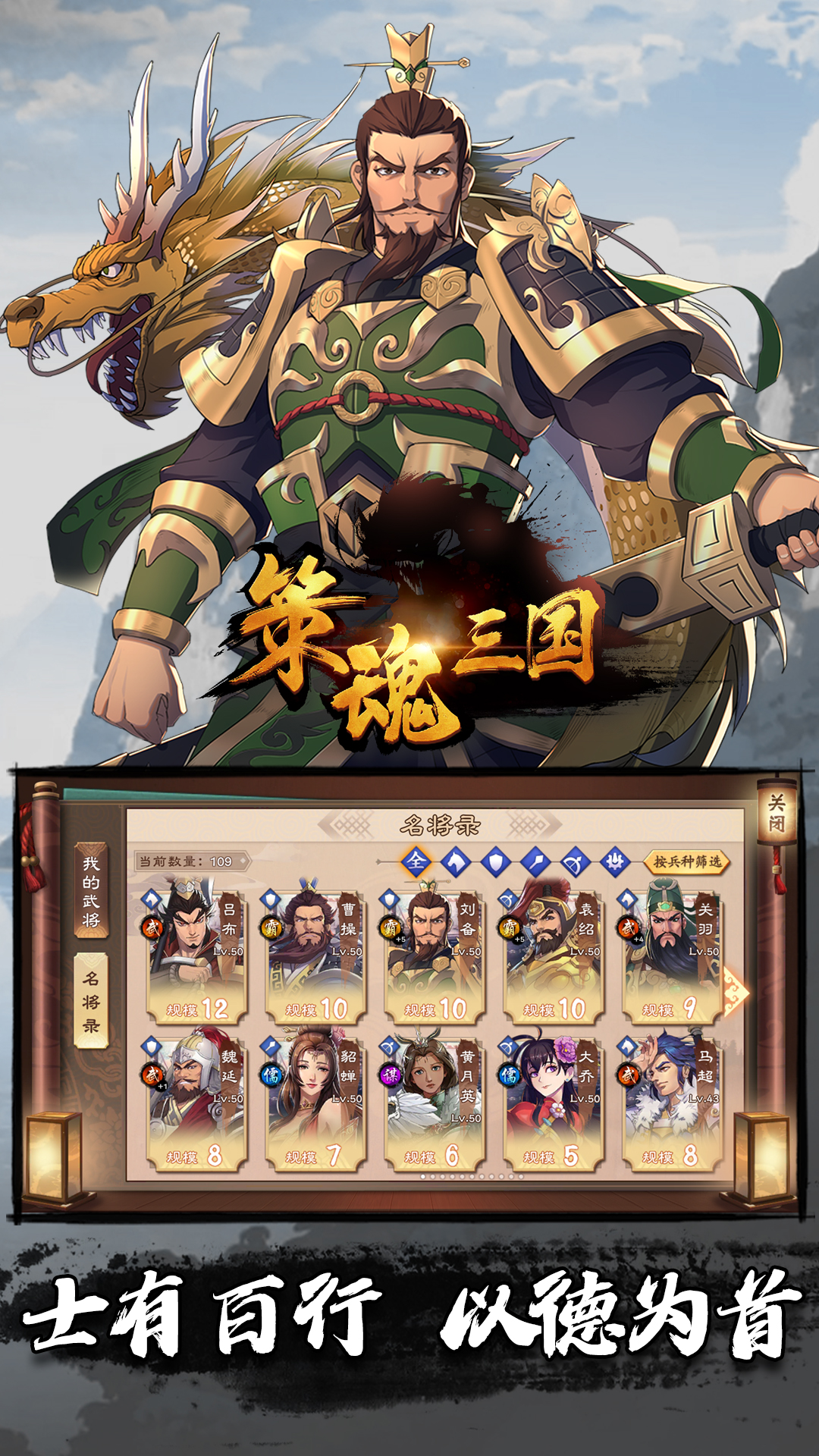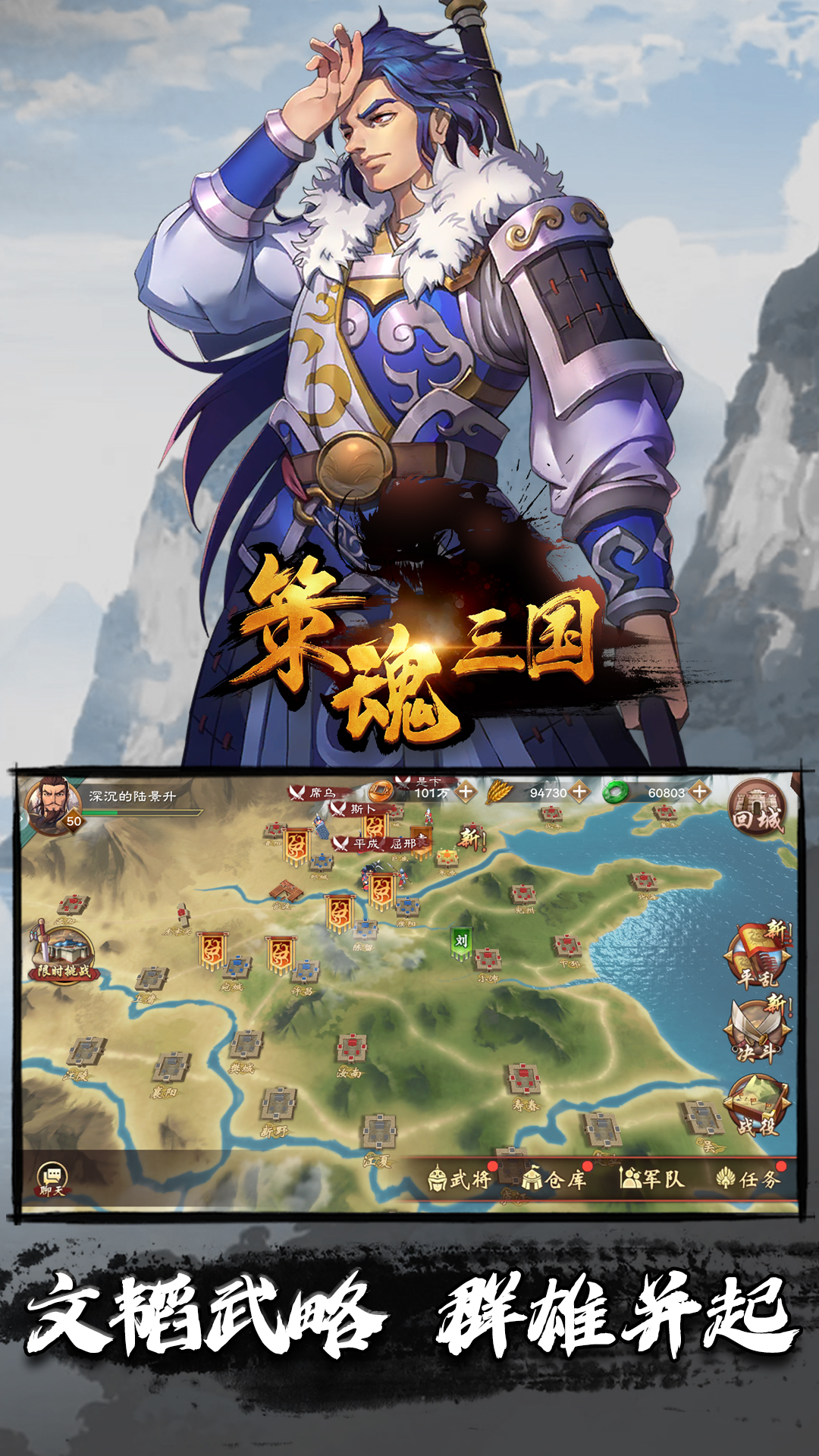 - 海量战斗配置,霸者、儒将、武将、军师等众多武将类型,搭配丰富的兵种、兵法、宝物与特技,战场瞬息万变。