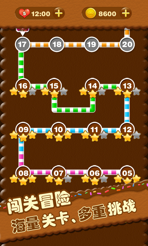 糖果连线是一款单机益智冒险休闲的消除游戏