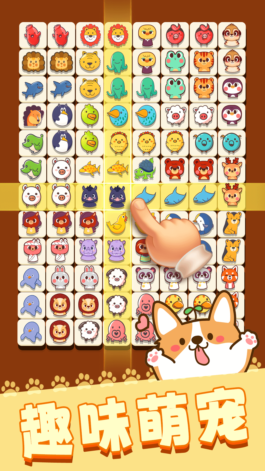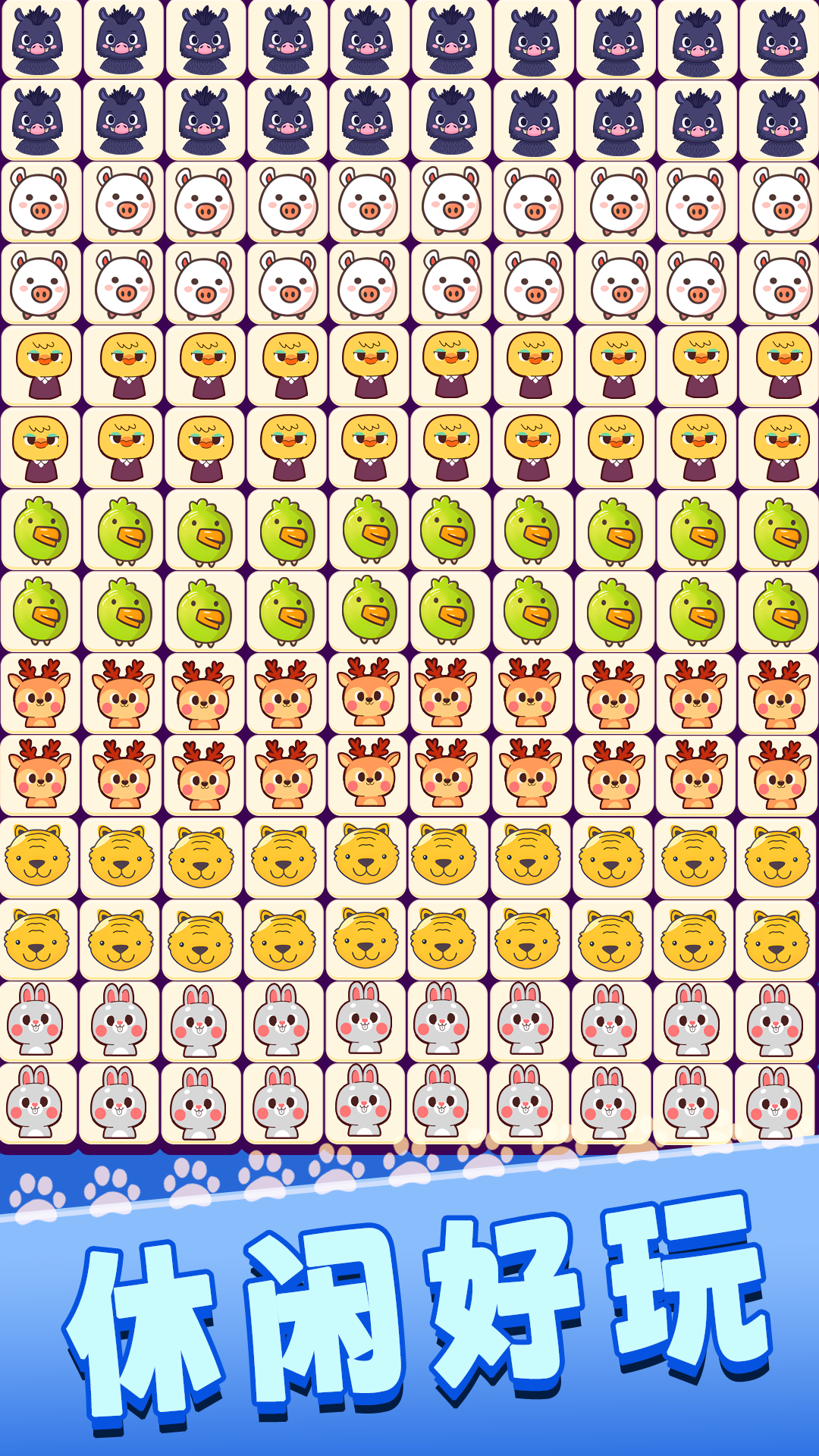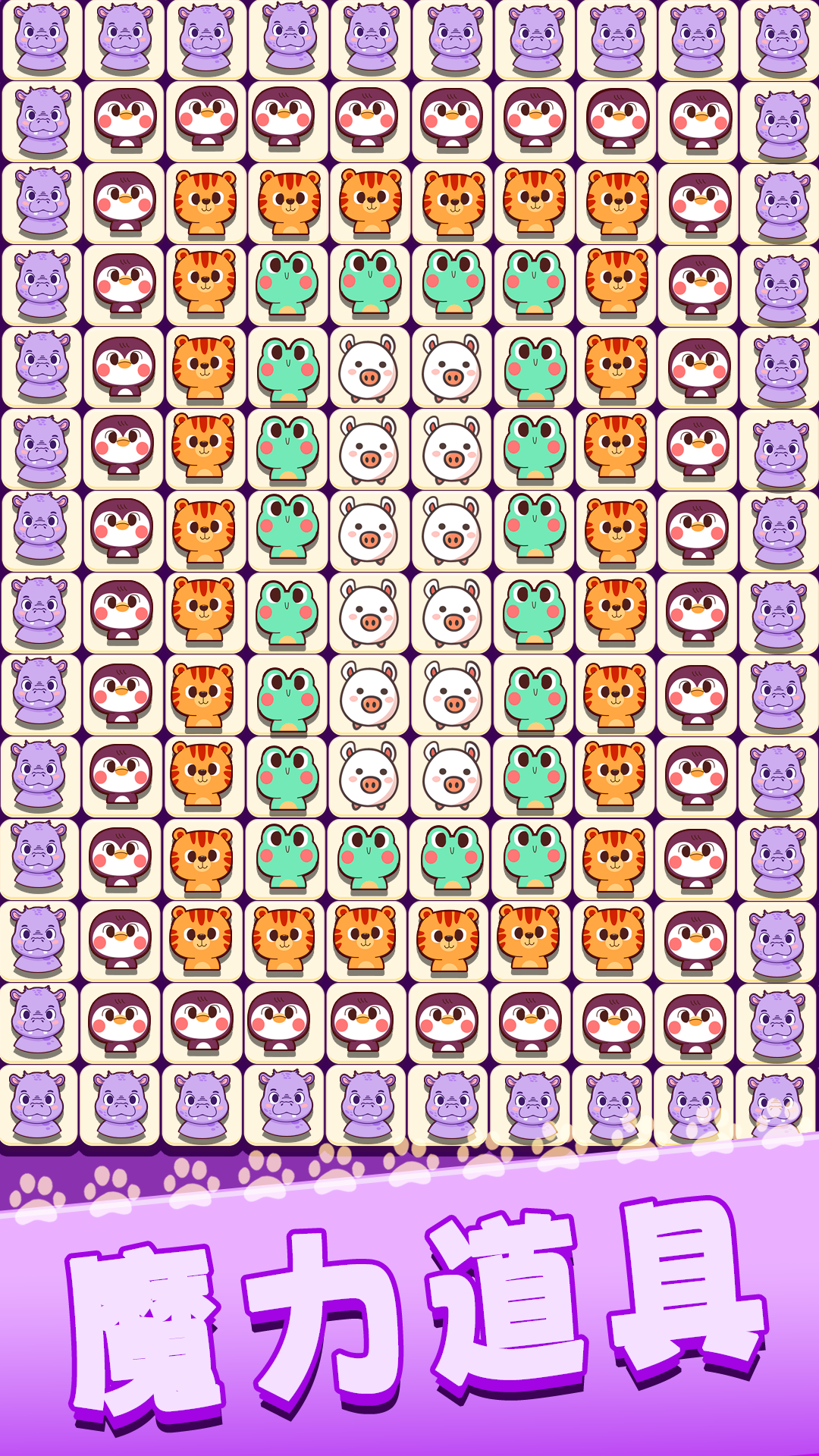 在这个游戏里,玩家要做的是滑动屏幕来进行图标消除呢。只要让两个相同的宠物图标在横向或者竖向排成一条直线,就能把它们消除掉,并且获得相应的分数啦。游戏的画面色彩特别明快,每一只宠物都被设计得超级可爱又萌趣十足,它们形态各异,表情也是千变万化的,真的是让人心里痒痒的,特别想跟它们一起玩耍。