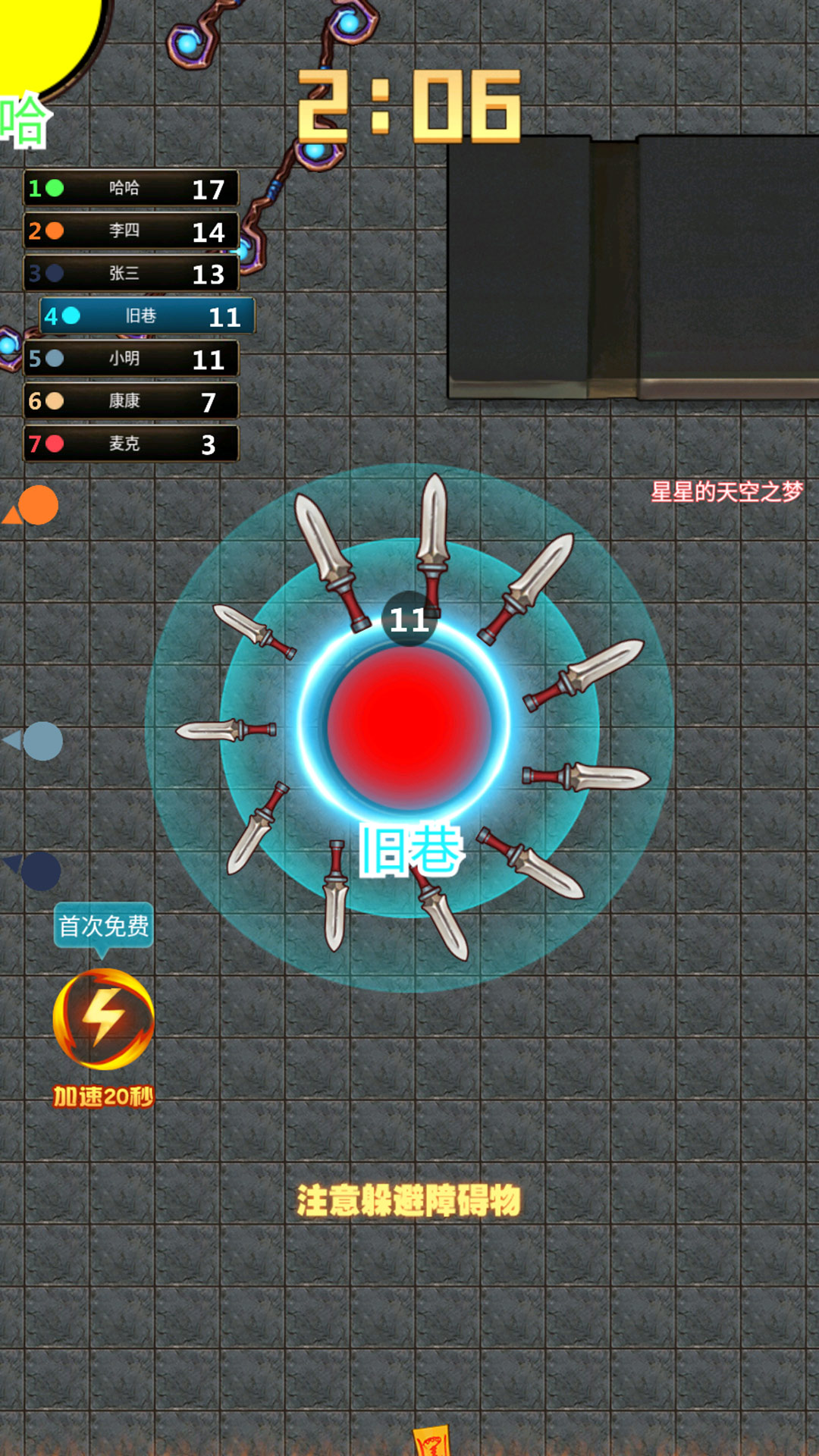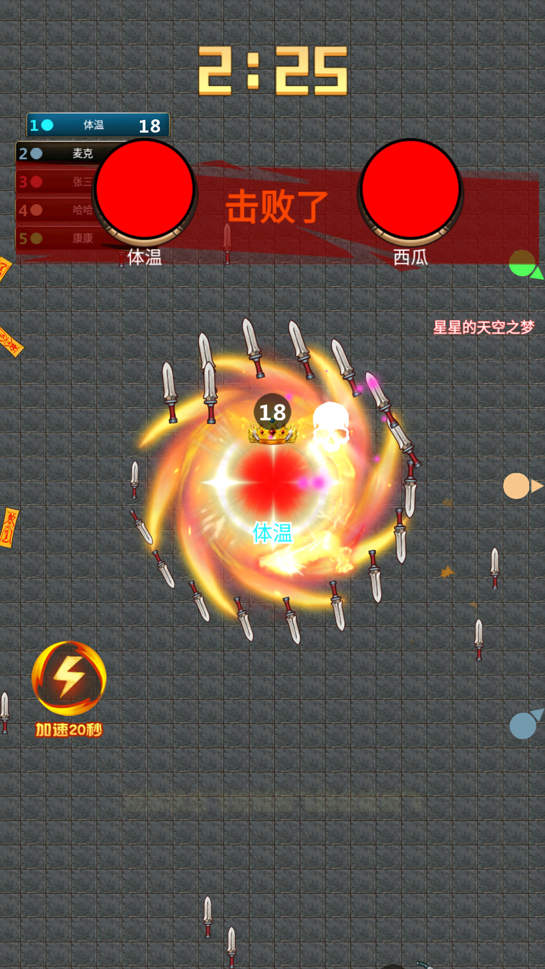 一款有趣的球球乱斗游戏,玩家需要收集场地上的武器击败敌人,每次击败敌人也能够获取敌人的武器变得更强,存活到最后的角色将成为胜者。