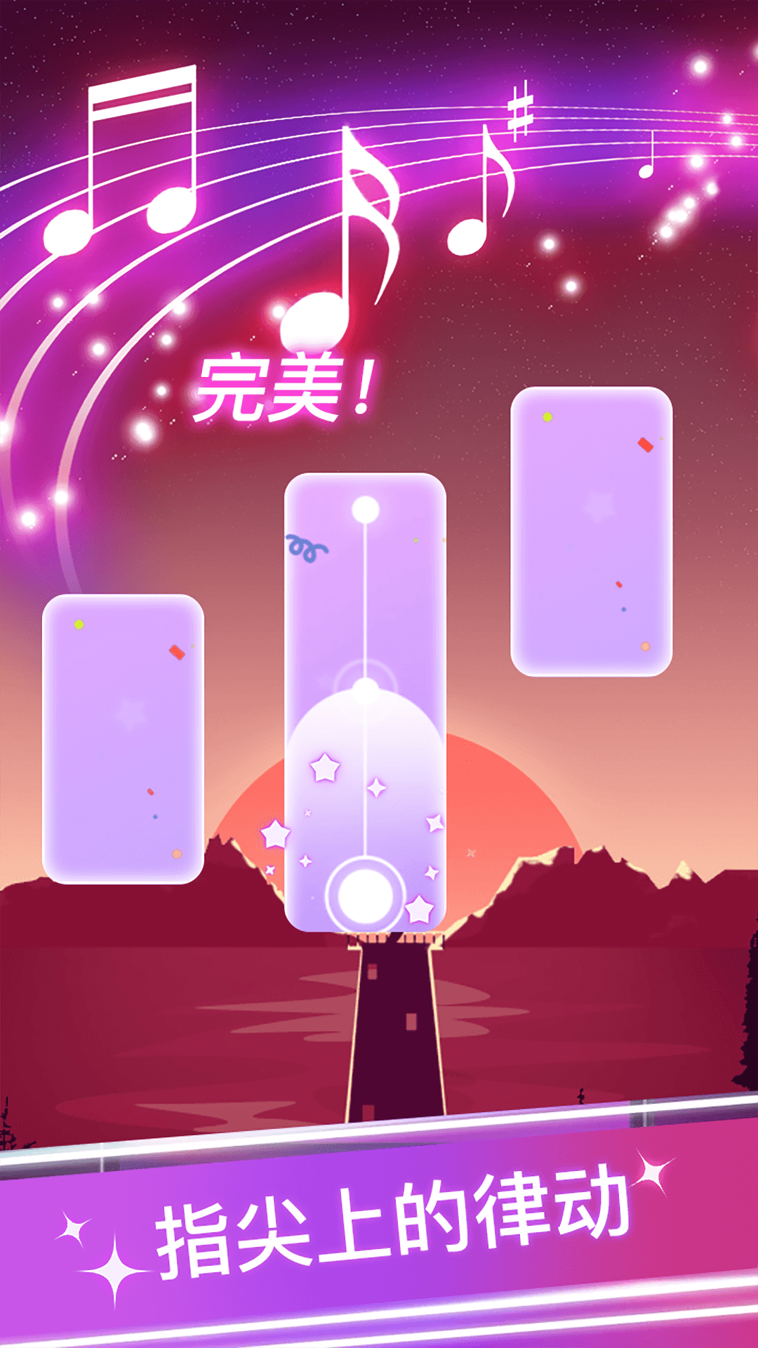 跟随背景音乐完成曲目的演奏,在演奏过程中钢琴块速度会随着音乐的进度出现的越来越快,