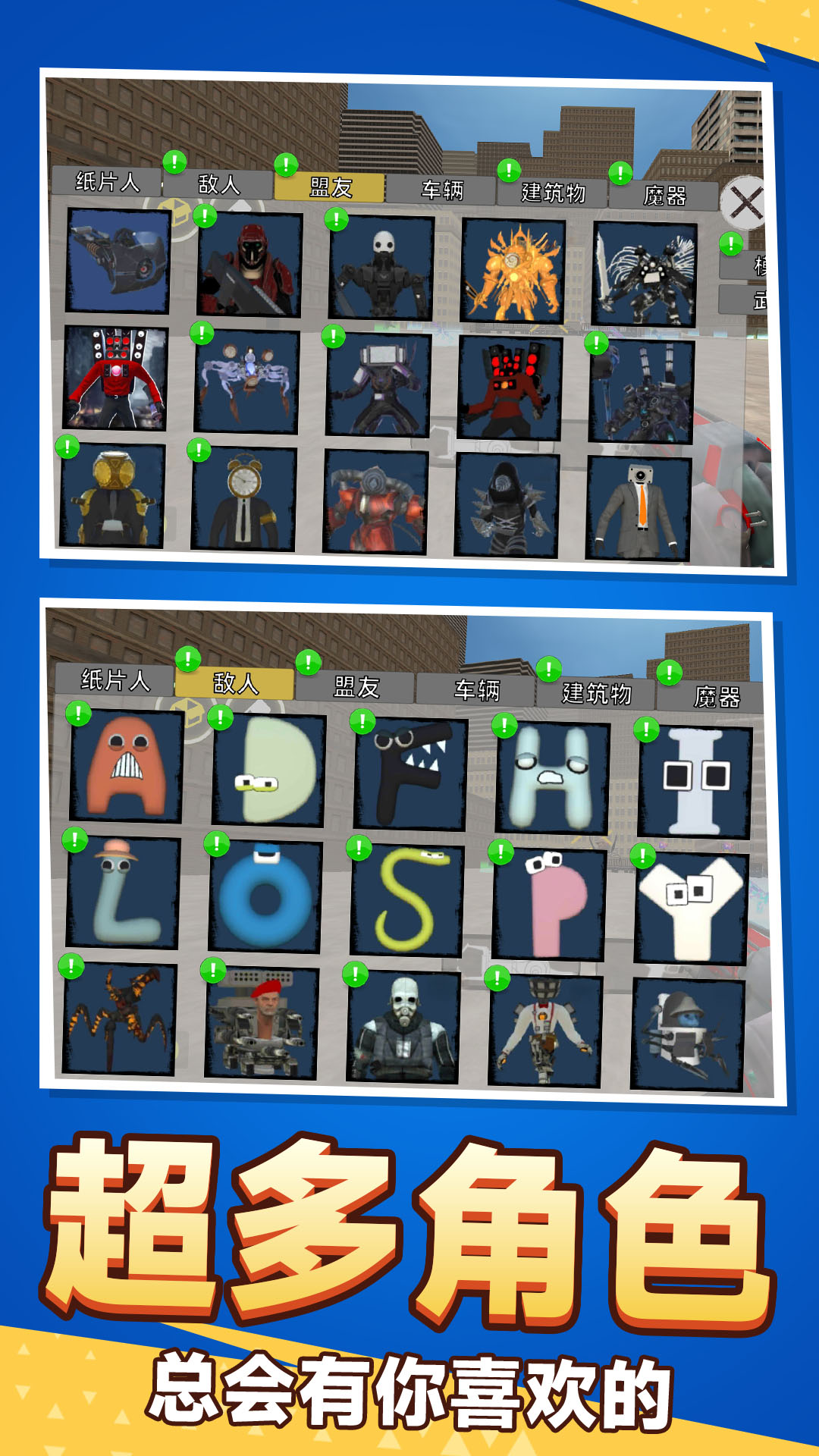 《沙盒竞技场》一款全新题材的沙盒射击类模拟游戏。沙盒内置模组版为你设计了大量怪物敌人,比如马桶人、圆锯人、弹头人、寄生物、外星飞碟等,你可以根据自己的需求进行随意放置,然后体验击杀怪物的快感。游戏拥有丰富的枪械以及地图场景,并且支持自定义设计怪物的形象,你可以充分发挥自己的想象力!还可以视觉控制你的角色进行近距离战斗。