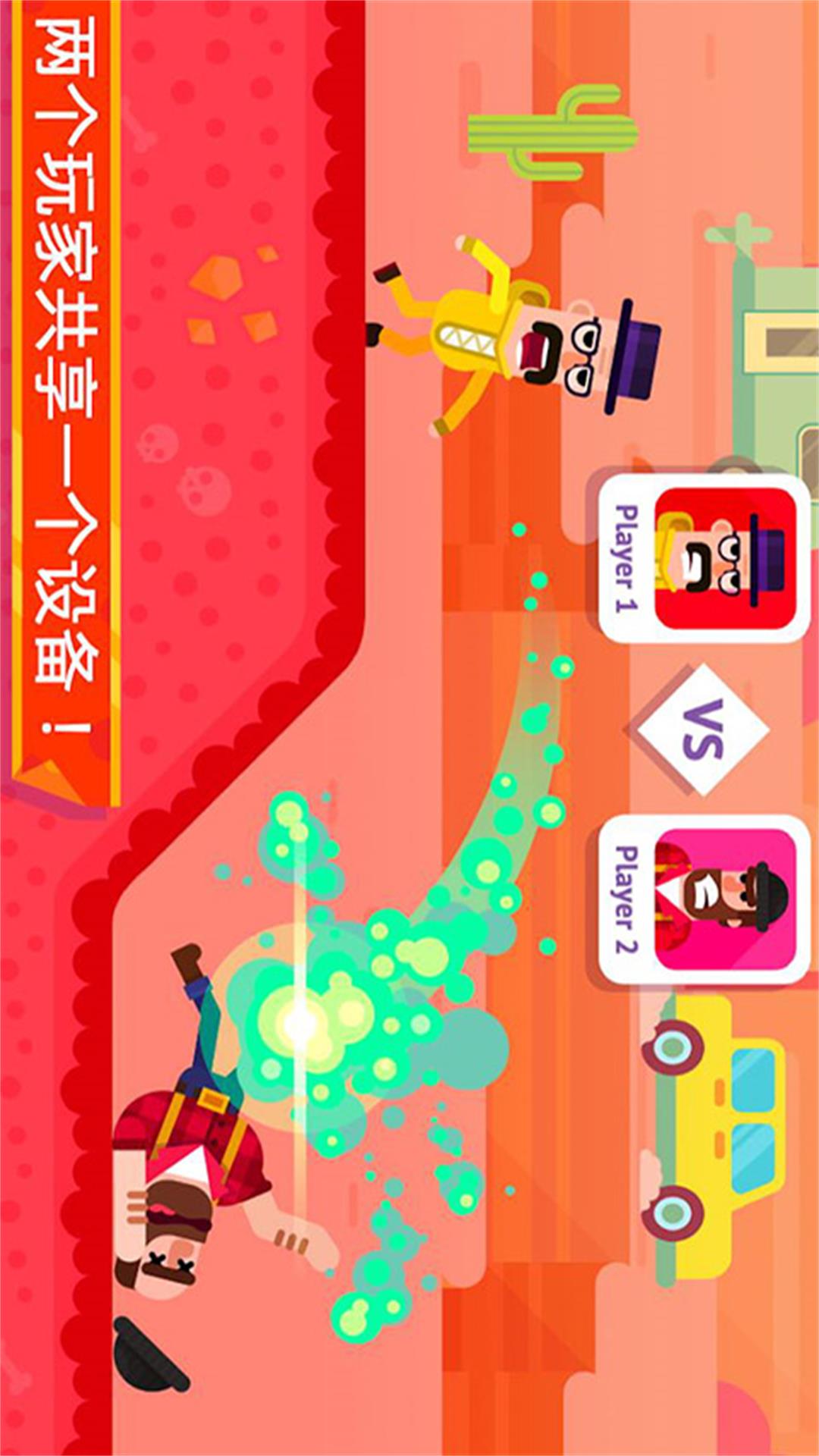 游戏中两个人物相隔数米,你需要调整角度和力度使你的武器以抛物线形式飞出,击中你的对手,每一个角色将会拥有一件属于自己的武器,