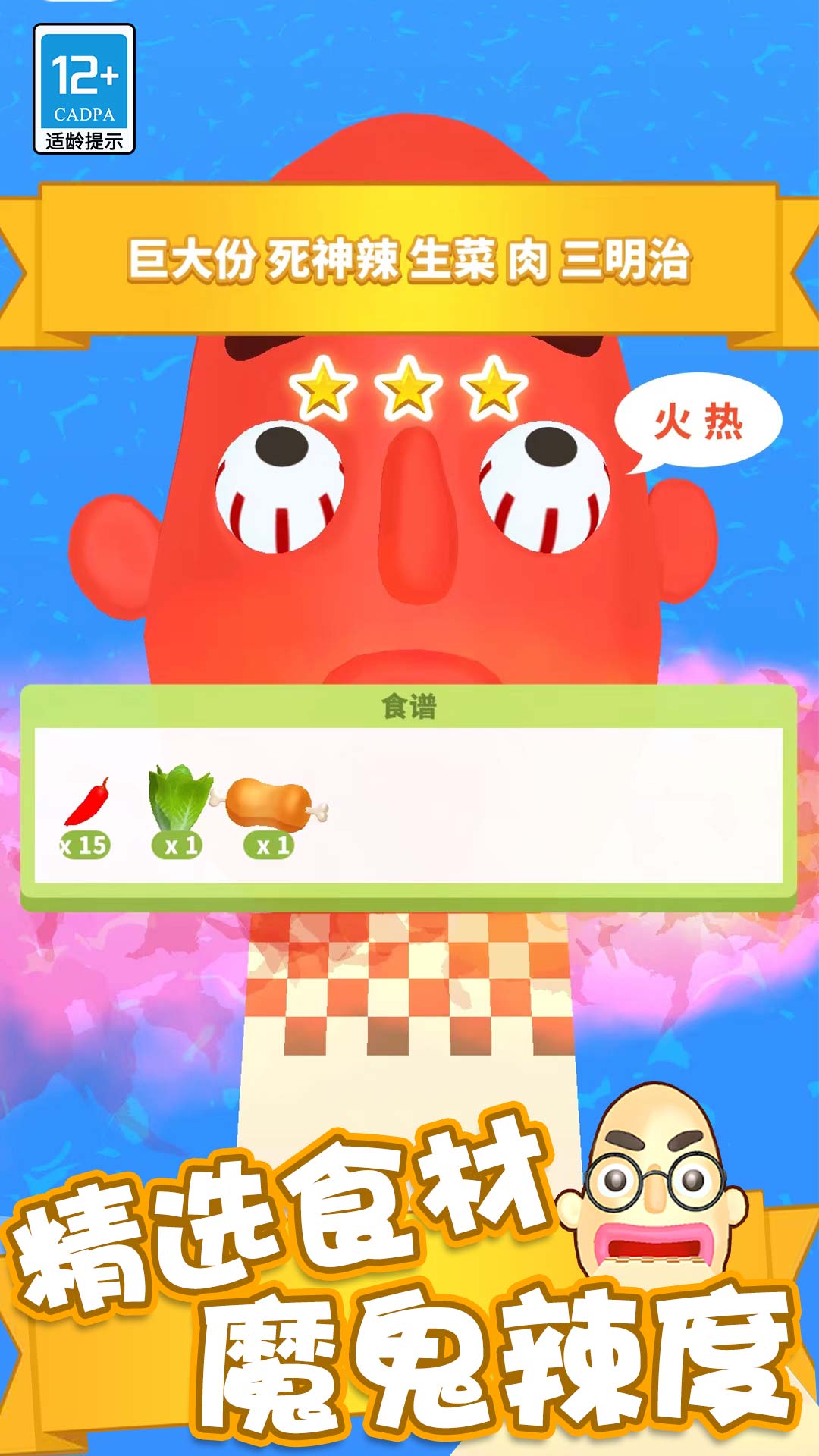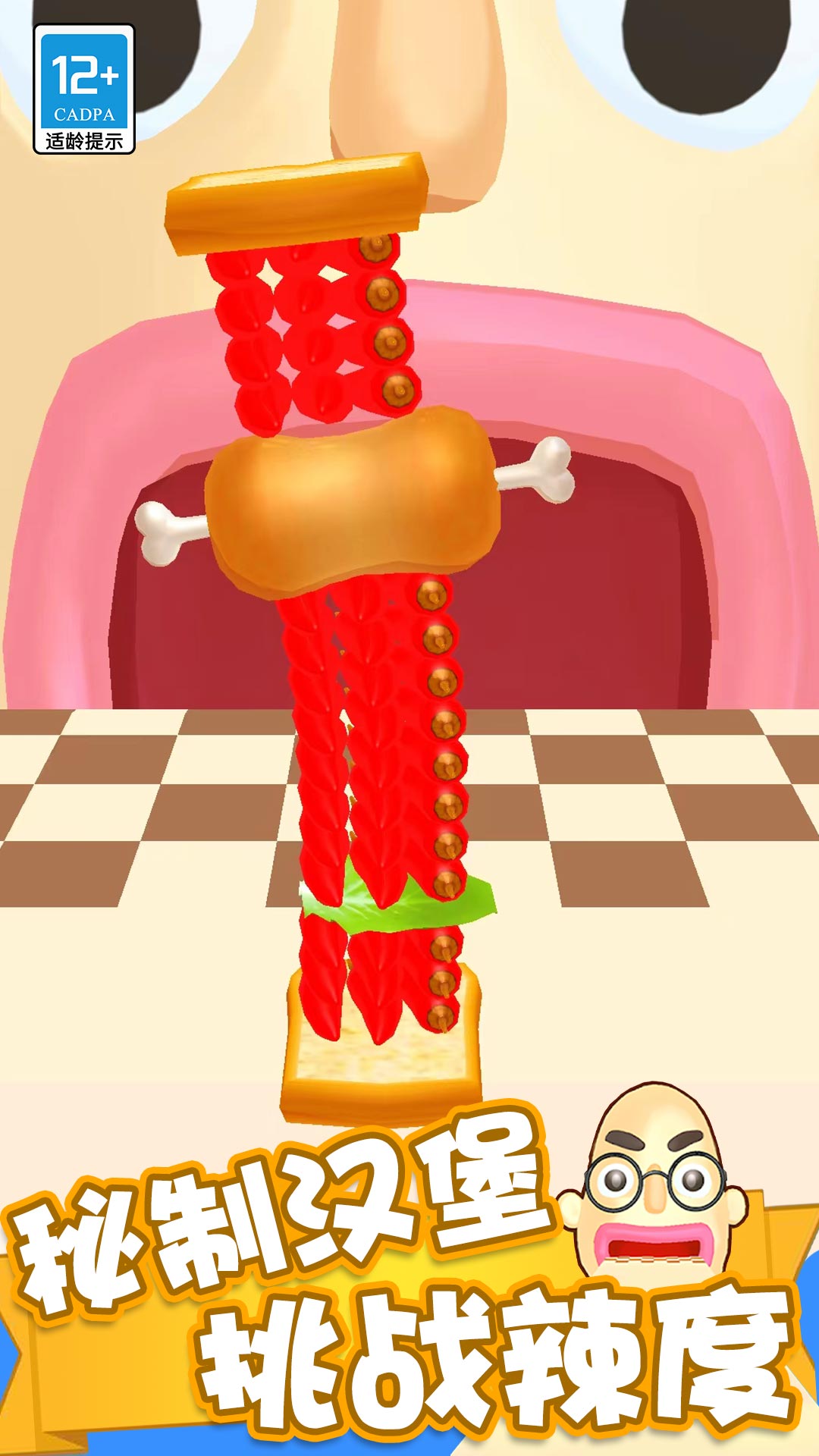 疯狂冲冲冲是一款美食制造游戏,在赛道中有着各种种类的配料。玩家需要通过自己的操作,搜集配料进行合理的搭配,制作出美味的三明治与汉堡。赛道中有着超级魔鬼椒、丰富的蔬菜、精选的肉类以及形形色色的可食用配料。玩家需要通过这些食材,荤素搭配制作出高评分的美味食物,测试你的料理能力。但是也需要注意赛道中也有着许多潜在的“危险”!譬如超级魔鬼椒、废弃的过期食材和海克斯科技!如果不小心添加过多的魔鬼椒,这一分汉堡可能会让你的顾客热度上头!如果不小心添加到了海克斯科技或废弃食材,小心顾客吃坏肚子的投诉!这是一款有趣,并且魔性的类跑酷+美食制作的游戏,创新的玩法让你在游戏的体验中欢乐连连!简单的操作,有趣的内容,可以帮助你释放一天的压力。