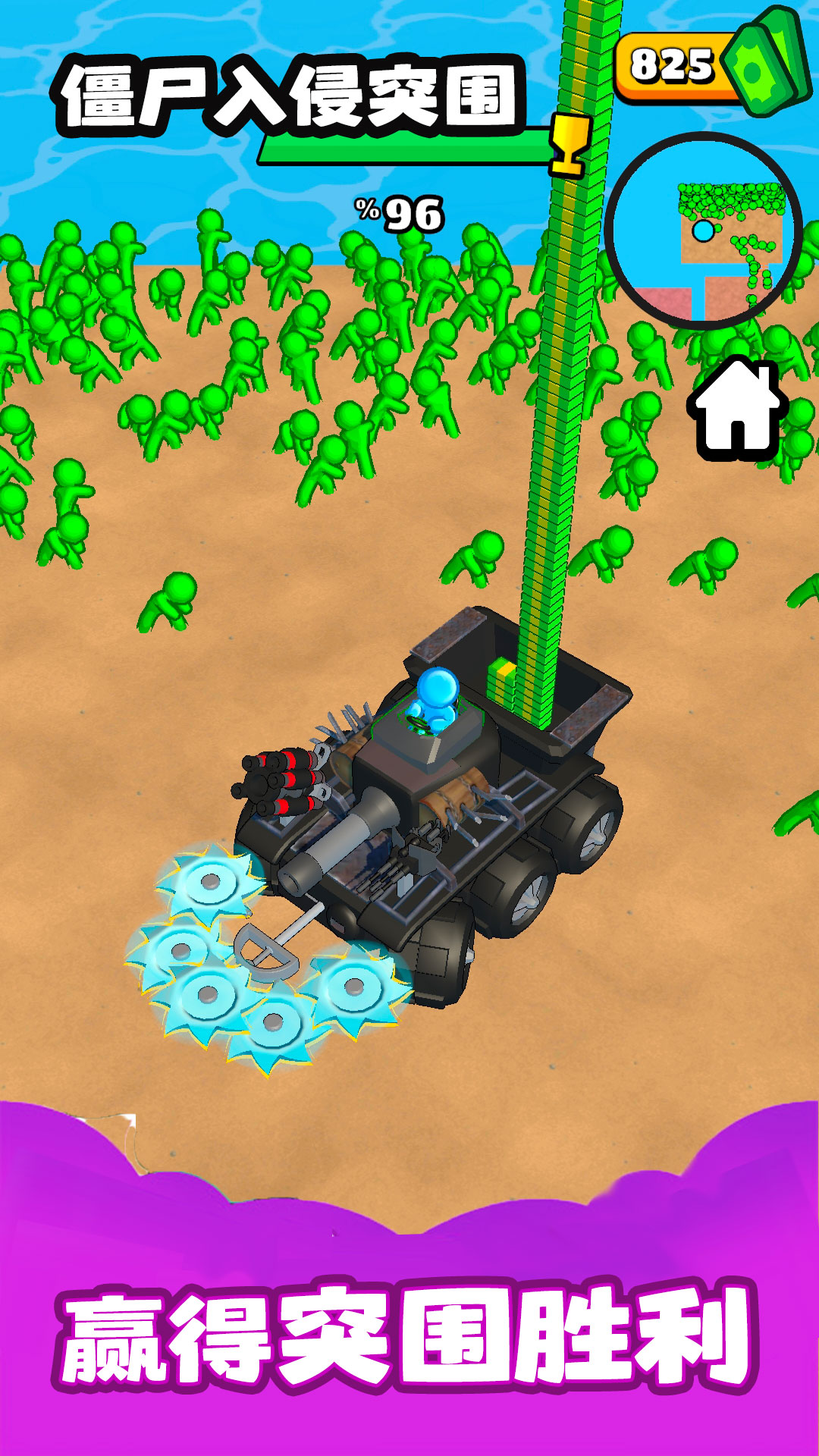 除了有紧张刺激的战斗,玩家还可以升级战车,为它涂上喜欢的喷漆,让它威力无穷,快来加入我们打赢这场突围战吧!