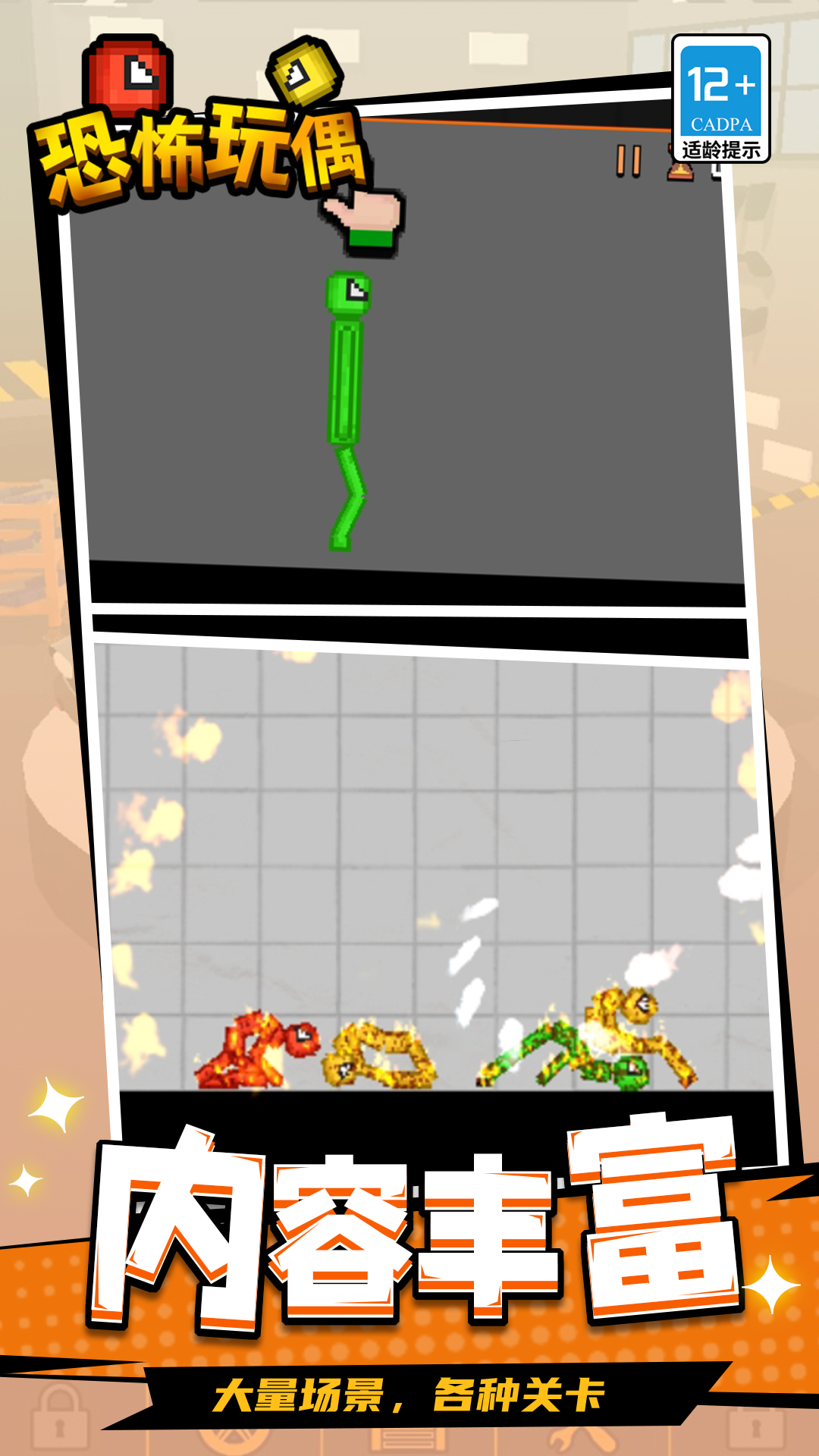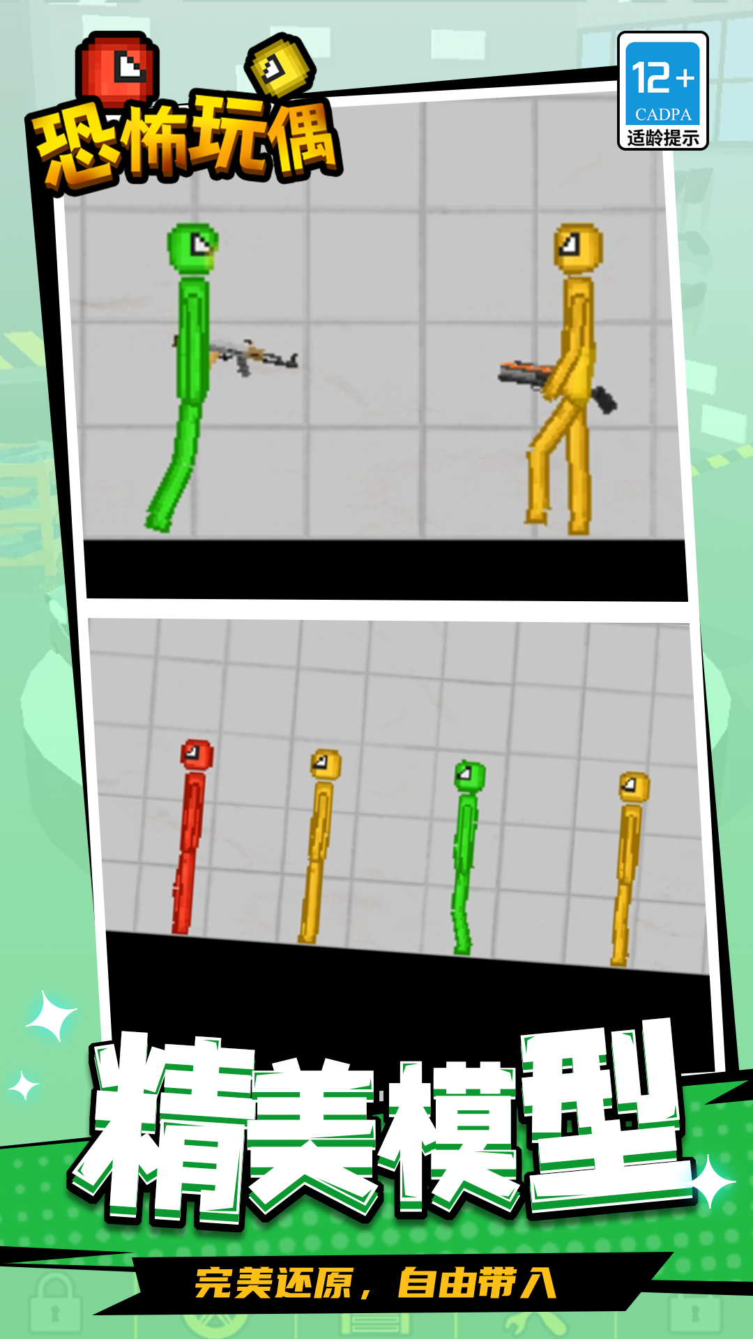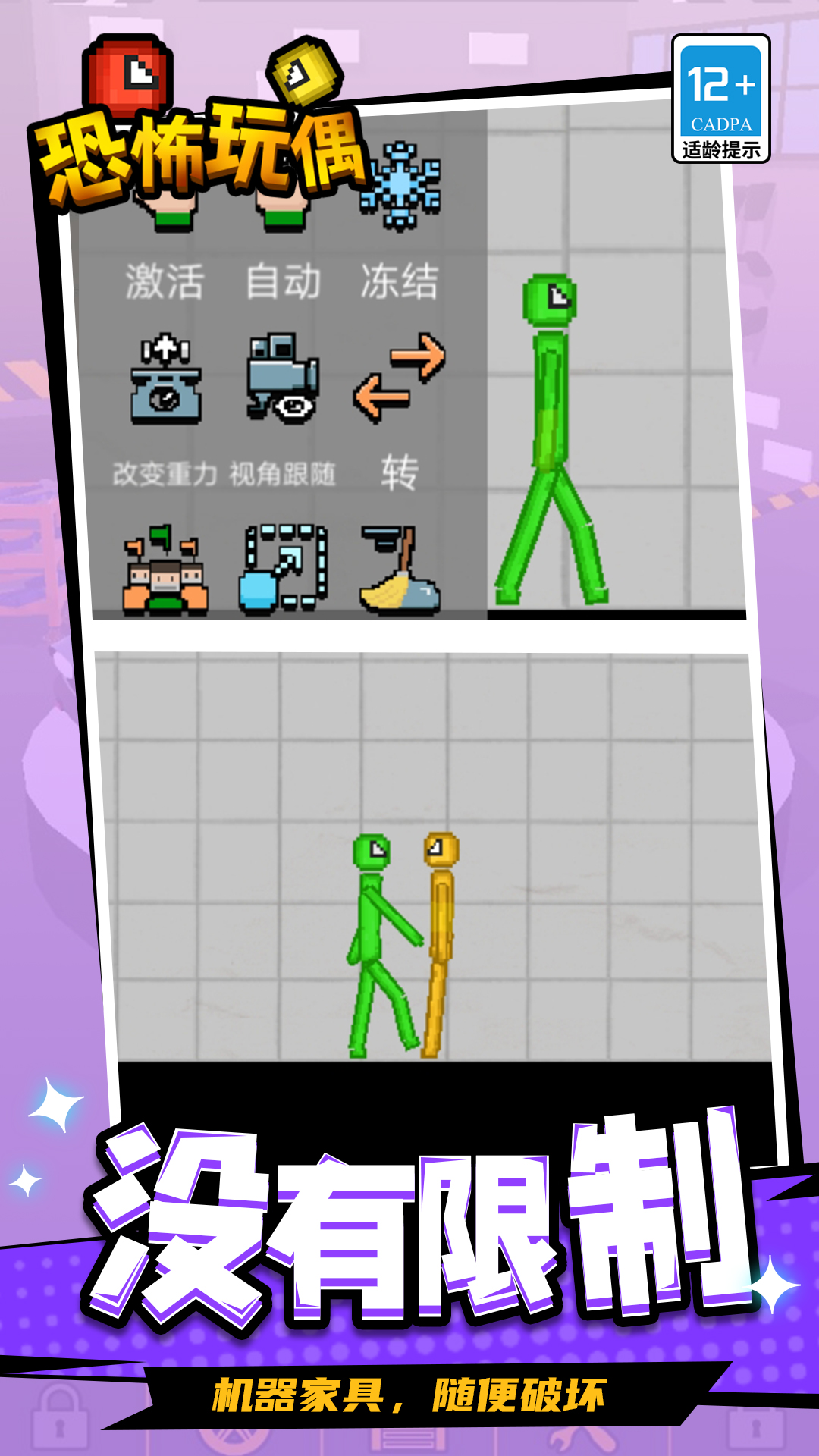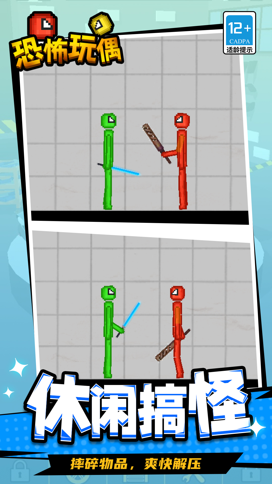 《恐怖玩偶》是一款火柴人沙盒冒险类模拟游戏。玩家控制火柴人玩偶在沙盒中展开冒险,在游戏里自由创造各式各样的场景,让玩家还可以为火柴人自由搭配不同的玩偶皮肤。玩家还可以自由选择与自己火柴人玩偶进行战斗的对手。快来控制你的火柴人玩偶去展开冒险吧!
