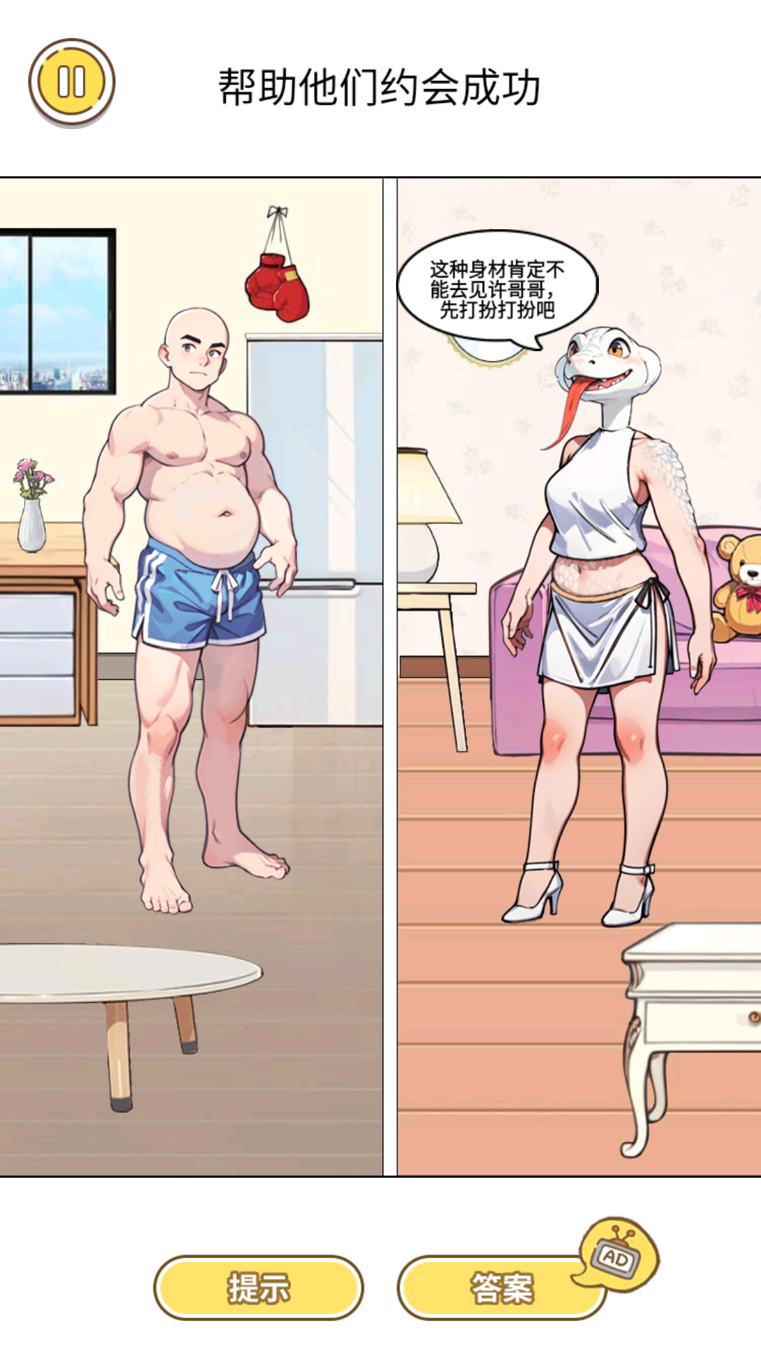 《变身来约会》是一款休闲益智游戏,游戏中你需要帮助白蛇变身成人,让她穿上美丽的服装,画上精致的妆容来和男友出去约会,仔细思考再选择道具来帮助她吧。