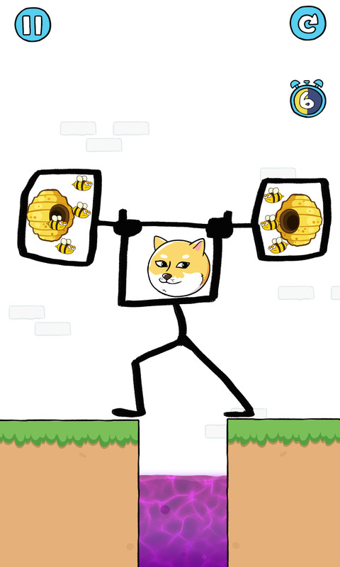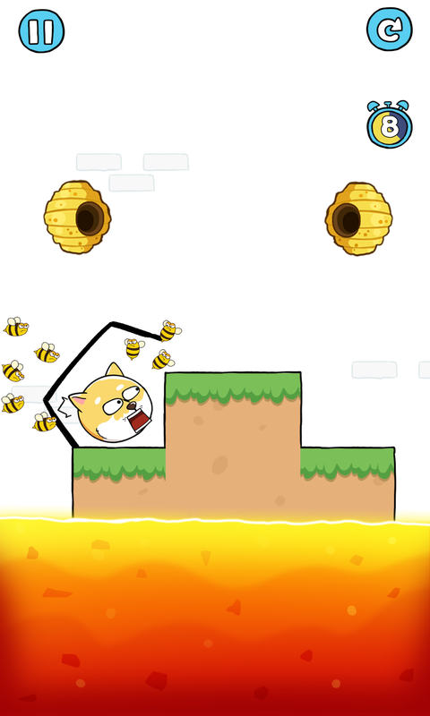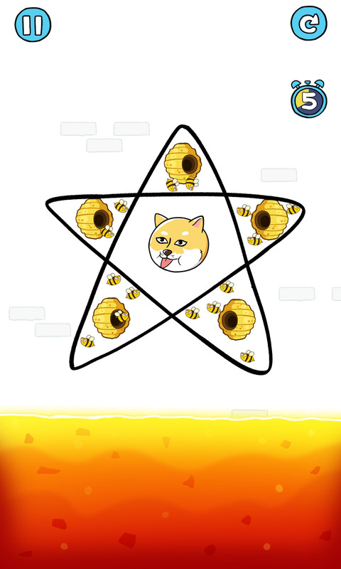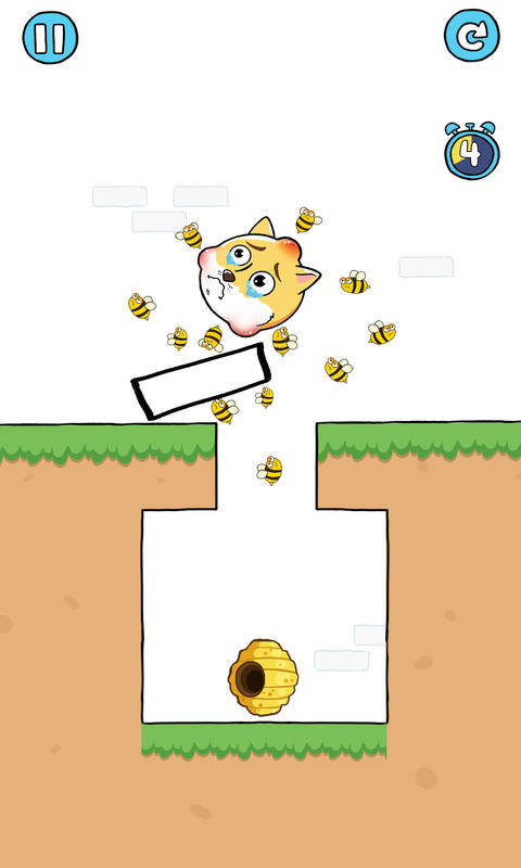 这里有一款绘画拯救类的益智游戏。您可以用手指画一条线当作墙壁,从而保护“总督”免受蜂巢中蜜蜂的攻击。在蜜蜂发起攻击的时候,您需要通过绘画构建彩色墙壁来保护小狗达10秒钟,只要坚持下来,您就能赢得比赛。快来运用您的智慧拯救小狗吧。